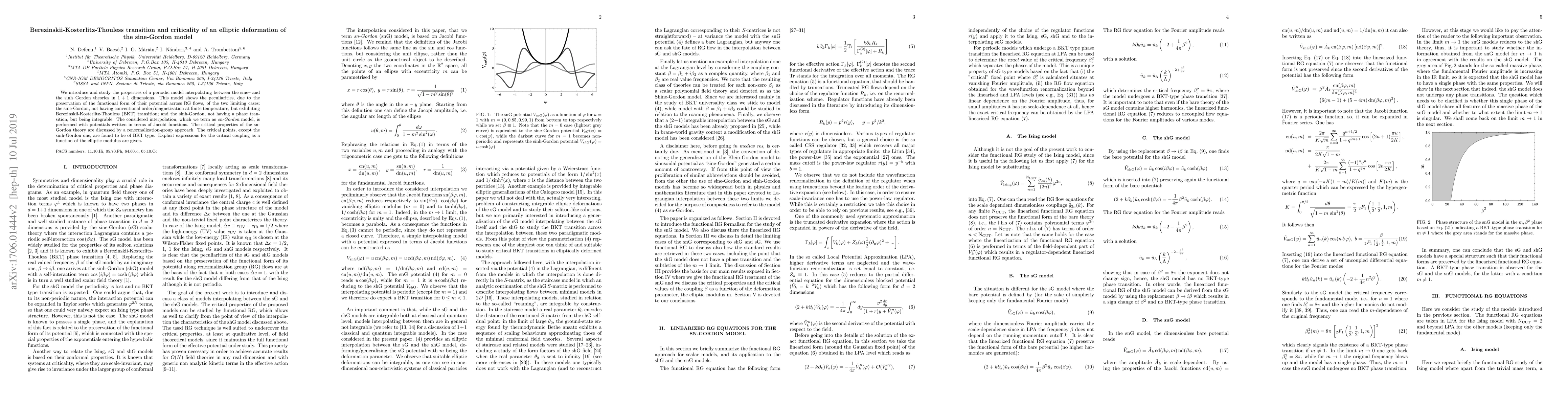 We introduce and study the properties of a periodic model interpolating between the sine-- and the sinh--Gordon theories in $1+1$ dimensions. This model shows the peculiarities, due to the preservation of the functional form of their potential across RG flows, of the two limiting cases: the sine-Gordon, not having conventional order/magnetization at finite temperature, but exhibiting Berezinskii-Kosterlitz-Thouless (BKT) transition; and the sinh-Gordon, not having a phase transition, but being integrable. The considered interpolation, which we term as {\em sn-Gordon} model, is performed with potentials written in terms of Jacobi functions. The critical properties of the sn-Gordon theory are discussed by a renormalization-group approach. The critical points, except the sinh-Gordon one, are found to be of BKT type. Explicit expressions for the critical coupling as a function of the elliptic modulus are given.
