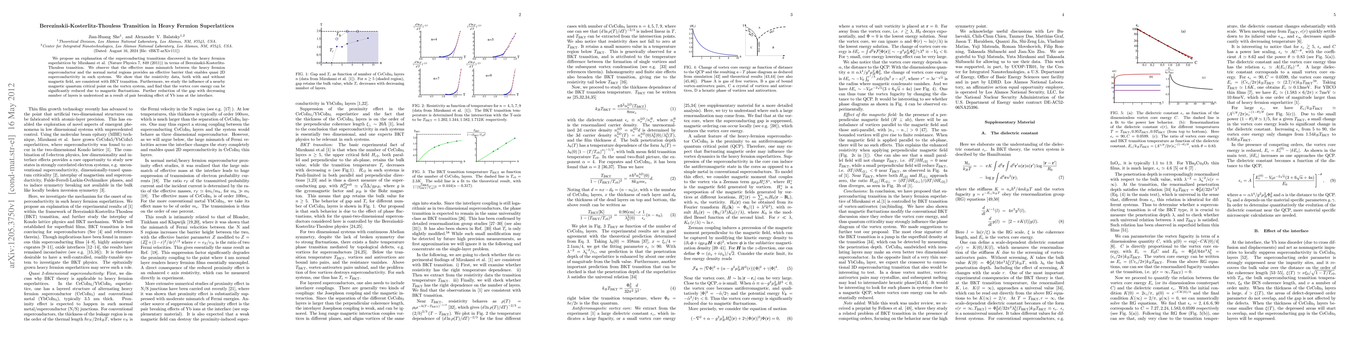 This paper explains the superconducting transitions in heavy fermion superlattices using the Berezinskii-Kosterlitz-Thouless (BKT) transition framework, showing that mass mismatch creates an effective barrier for quasi 2D superconductivity. The study finds resistivity data consistent with BKT transition and notes reduced vortex core energy near magnetic quantum critical points.