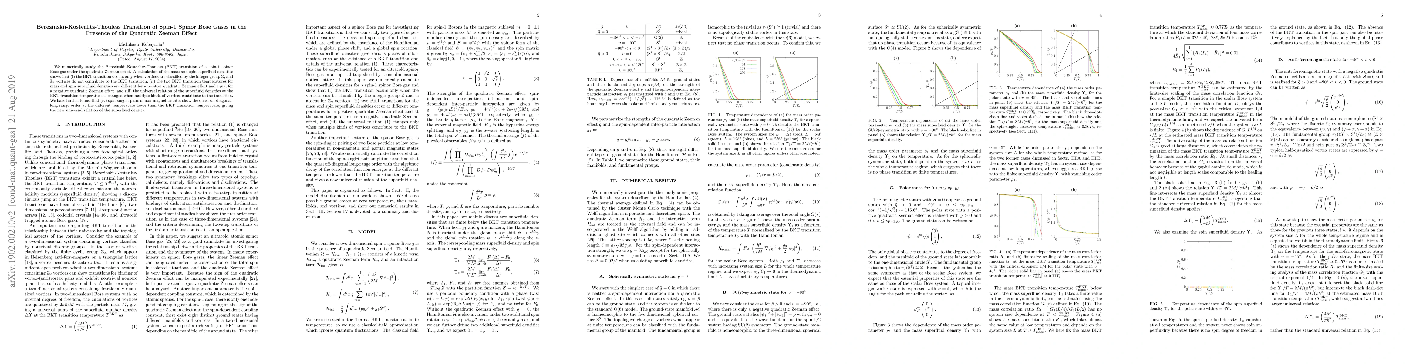 This paper numerically investigates the Berezinskii-Kosterlitz-Thouless (BKT) transition in spin-1 spinor Bose gases influenced by a quadratic Zeeman effect, revealing that only $\mathbb{Z}$ vortices contribute to the transition, and different BKT transition temperatures exist for mass and spin superfluid densities depending on the sign of the Zeeman effect.