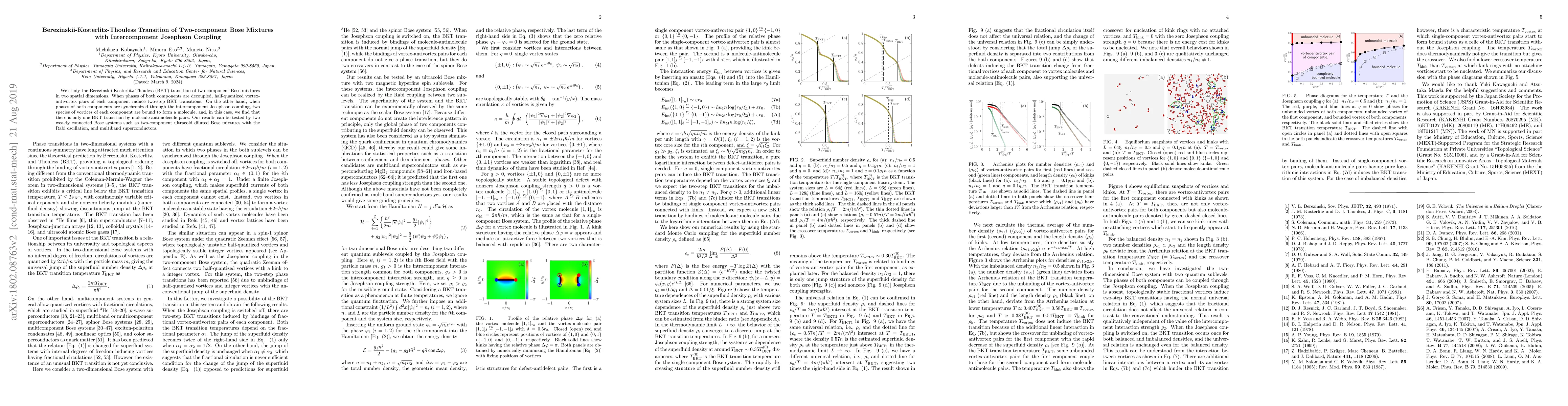 This paper investigates the Berezinskii-Kosterlitz-Thouless (BKT) transition in two-component Bose mixtures, showing that decoupling of component phases leads to two-step BKT transitions via vortex-antivortex pairs, while inter-component Josephson coupling results in a single BKT transition through molecule-antimolecule pairs. Experimental verification is proposed for systems like ultracold Bose mixtures and multiband superconductors.