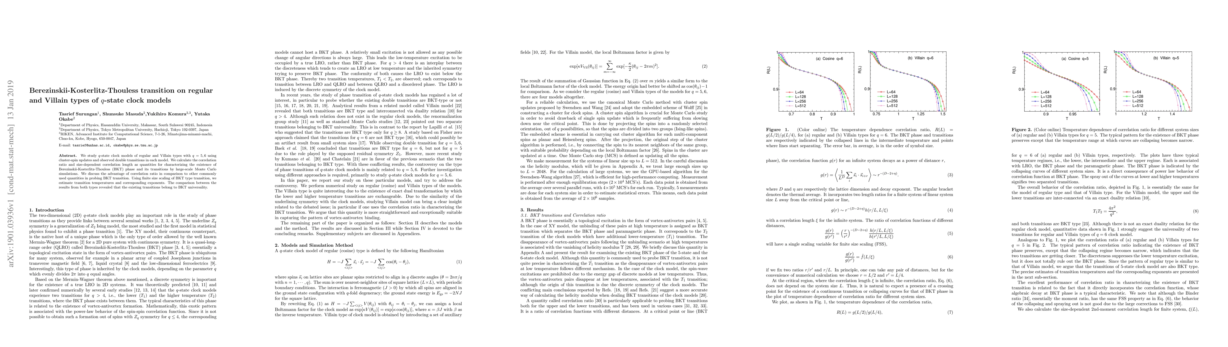 We study $q$-state clock models of regular and Villain types with $q=5,6$ using cluster-spin updates and observed double transitions in each model. We calculate the correlation ratio and size-dependent correlation length as quantities for characterizing the existence of Berezinskii-Kosterlitz-Thouless (BKT) phase and its transitions by large-scale Monte Carlo simulations. We discuss the advantage of correlation ratio in comparison to other commonly used quantities in probing BKT transition. Using finite size scaling of BKT type transition, we estimate transition temperatures and corresponding exponents. The comparison between the results from both types revealed that the existing transitions belong to BKT universality.
