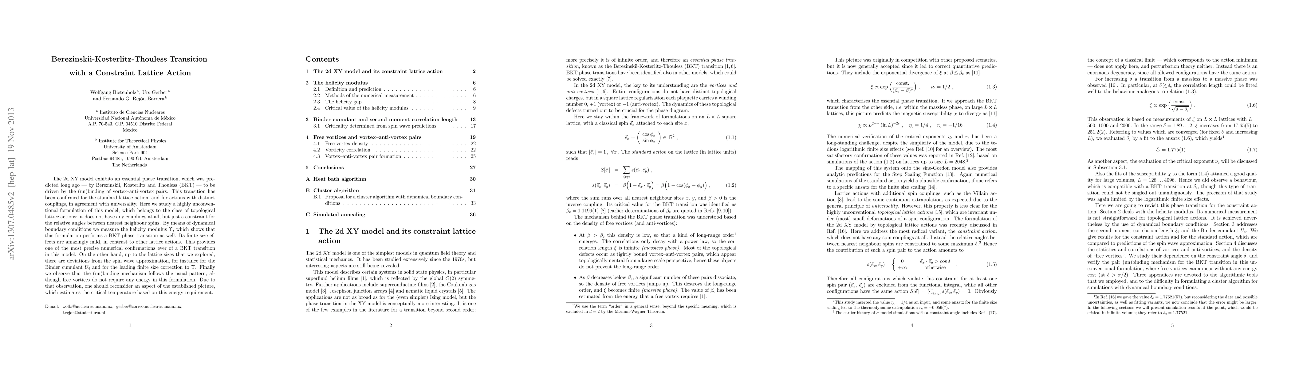 This paper investigates the Berezinskii-Kosterlitz-Thouless (BKT) phase transition in a 2D XY model with a constraint lattice action, demonstrating a BKT transition through the helicity modulus measurement. The study finds remarkably mild finite size effects and deviations from the spin wave approximation, suggesting a reconsideration of the critical temperature estimation based on vortex energy requirements.