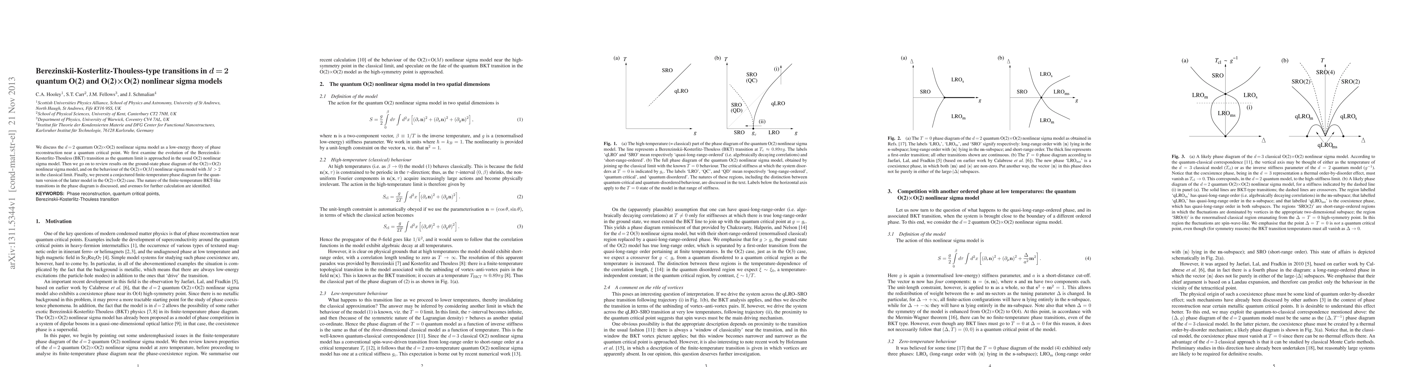 This paper explores the Berezinskii-Kosterlitz-Thouless (BKT) transition in d=2 quantum O(2) and O(2)xO(2) nonlinear sigma models, examining their evolution near quantum critical points and presenting a conjectured phase diagram for the quantum O(2)xO(2) model. It identifies BKT-like transitions and suggests directions for further research.