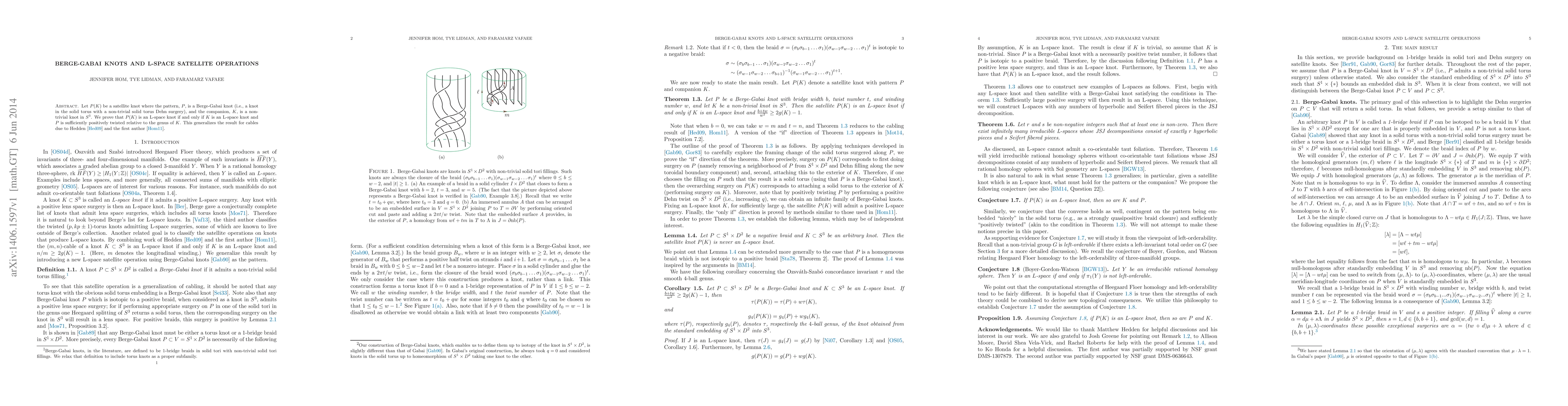 Let $P(K)$ be a satellite knot where the pattern, $P$, is a Berge-Gabai knot (i.e., a knot in the solid torus with a non-trivial solid torus Dehn surgery), and the companion, $K$, is a non-trivial knot in $S^3$. We prove that $P(K)$ is an L-space knot if and only if $K$ is an L-space knot and $P$ is sufficiently positively twisted relative to the genus of $K$. This generalizes the result for cables due to Hedden and the first author.