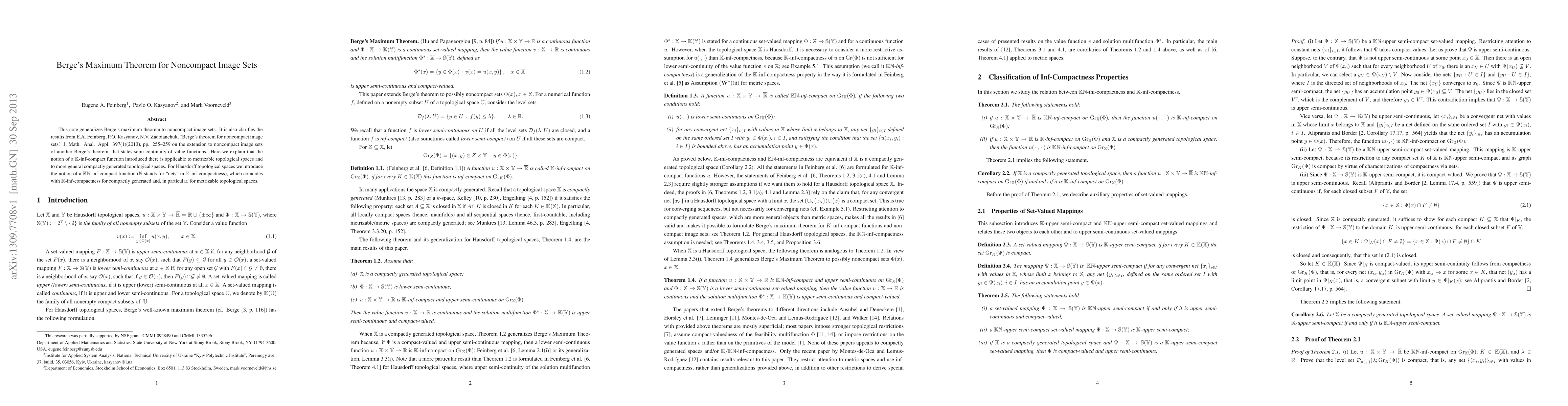 This note generalizes Berge's maximum theorem to noncompact image sets. It is also clarifies the results from E.A. Feinberg, P.O. Kasyanov, N.V. Zadoianchuk, "Berge's theorem for noncompact image sets," J. Math. Anal. Appl. 397(1)(2013), pp. 255-259 on the extension to noncompact image sets of another Berge's theorem, that states semi-continuity of value functions. Here we explain that the notion of a $\K$-inf-compact function introduced there is applicable to metrizable topological spaces and to more general compactly generated topological spaces. For Hausdorff topological spaces we introduce the notion of a $\K\N$-inf-compact function ($\N$ stands for "nets" in $\K$-inf-compactness), which coincides with $\K$-inf-compactness for compactly generated and, in particular, for metrizable topological spaces.