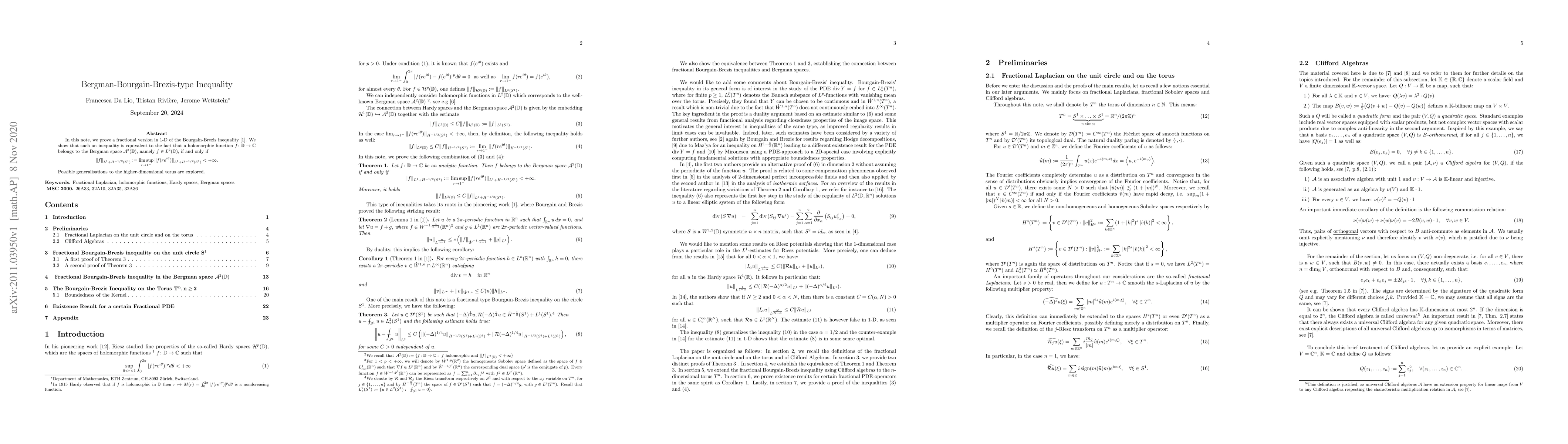 In this note, we prove a fractional version in $1$-D of the Bourgain-Brezis inequality \cite{bourgain1}. We show that such an inequality is equivalent to the fact that a holomorphic function $f\colon\D\to\C$ belongs to the Bergman space ${\mathcal{A}}^2(\D)$, namely $f\in L^2(\D)$, if and only if $$\|f\|_{ L^1+ {H}^{-1/2}(S^1)}:=\limsup_{r\to 1^-}\|f(re^{i\theta})\|_{ L^1+ {H}^{-1/2}(S^1)}<+\infty.$$ Possible generalisations to the higher-dimensional torus are explored.