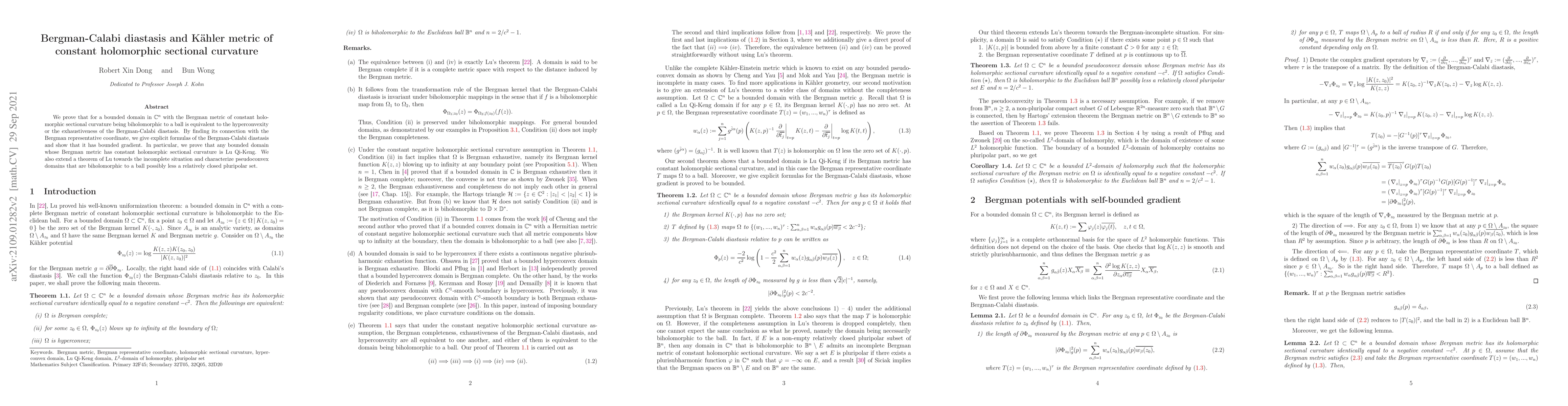 We prove that for a bounded domain in $\mathbb C^n$ with the Bergman metric of constant holomorphic sectional curvature being biholomorphic to a ball is equivalent to the hyperconvexity or the exhaustiveness of the Bergman-Calabi diastasis. By finding its connection with the Bergman representative coordinate, we give explicit formulas of the Bergman-Calabi diastasis and show that it has bounded gradient. In particular, we prove that any bounded domain whose Bergman metric has constant holomorphic sectional curvature is Lu Qi-Keng. We also extend a theorem of Lu towards the incomplete situation and characterize pseudoconvex domains that are biholomorphic to a ball possibly less a relatively closed pluripolar set.