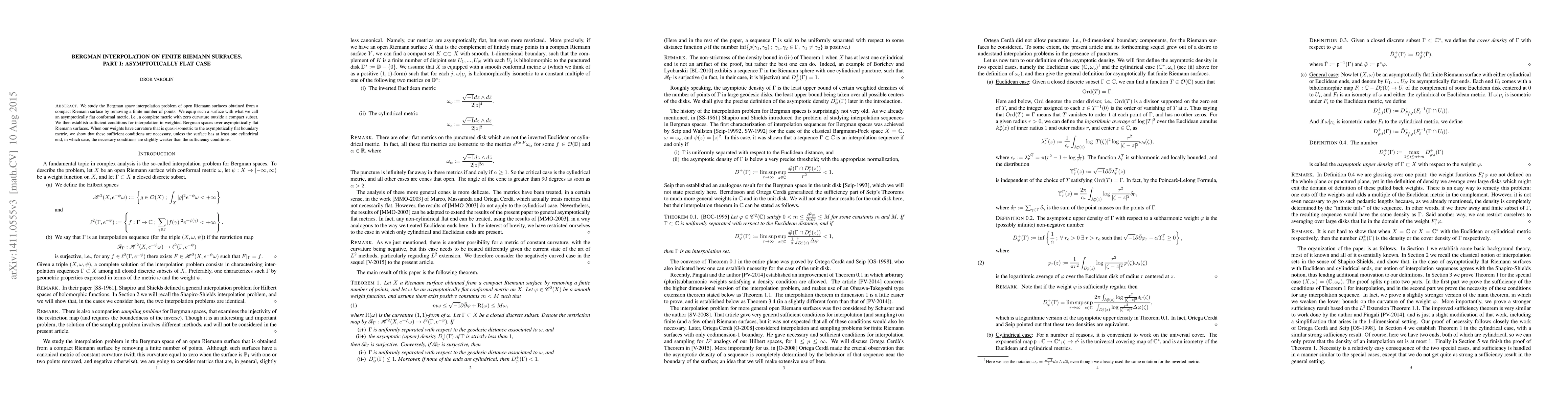 This paper investigates the Bergman space interpolation problem on open Riemann surfaces derived from compact ones by removing points, focusing on asymptotically flat conformal metrics. It provides necessary and sufficient conditions for interpolation in weighted Bergman spaces over these surfaces.