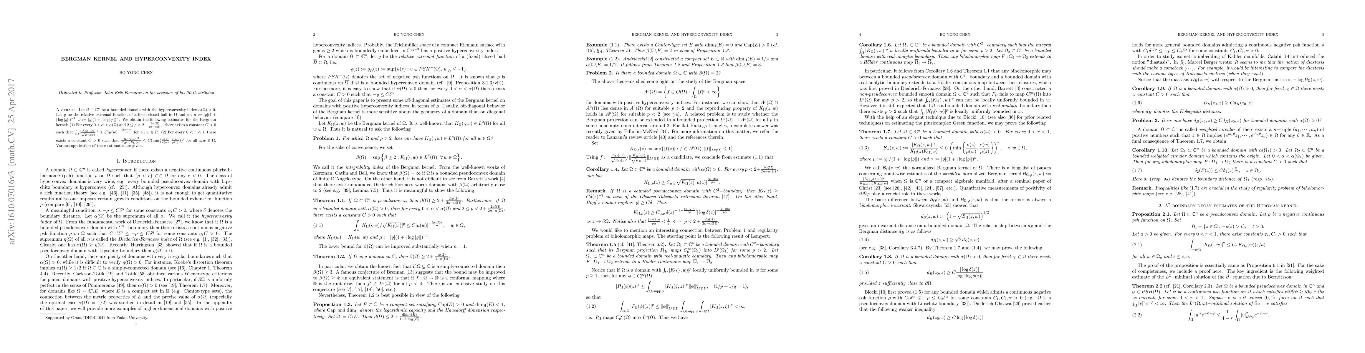the Bergman kernel: (1) For every $0<\alpha<\alpha(\Omega)$ and $2\le