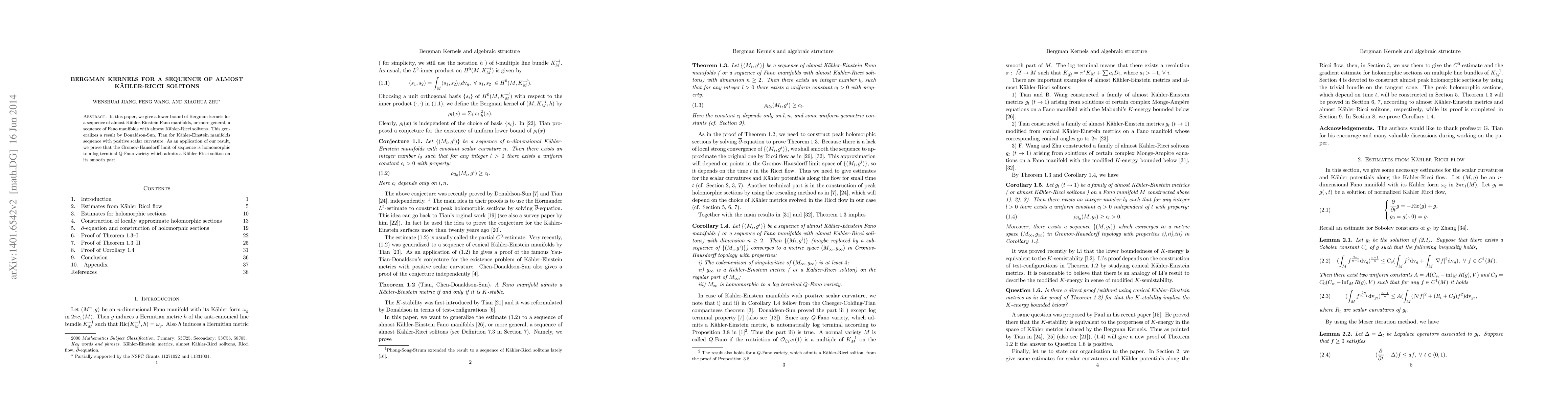 In this paper, we give a lower bound of Bergman kernels for a sequence of almost K\"{a}hler-Einstein Fano manifolds, or more general, a sequence of Fano manifolds with almost K\"{a}hler-Ricci solitons. This generalizes a result by Donaldson-Sun, Tian for K\"{a}hler-Einstein manifolds sequence with positive scalar curvature. As an application of our result, we prove that the Gromov-Hausdorff limit of sequence is homomorphic to a log terminal $Q$-Fano variety which admits a K\"{a}hler-Ricci soliton on its smooth part.