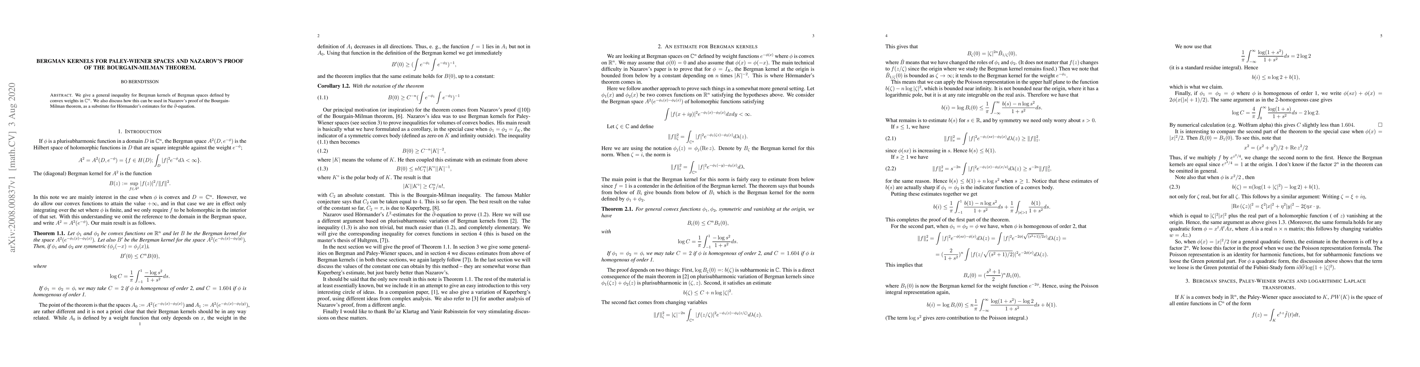 This paper introduces a general inequality for Bergman kernels of convex-weighted Bergman spaces, providing an alternative to H"ormander's estimates in Nazarov's proof of the Bourgain-Milman theorem.