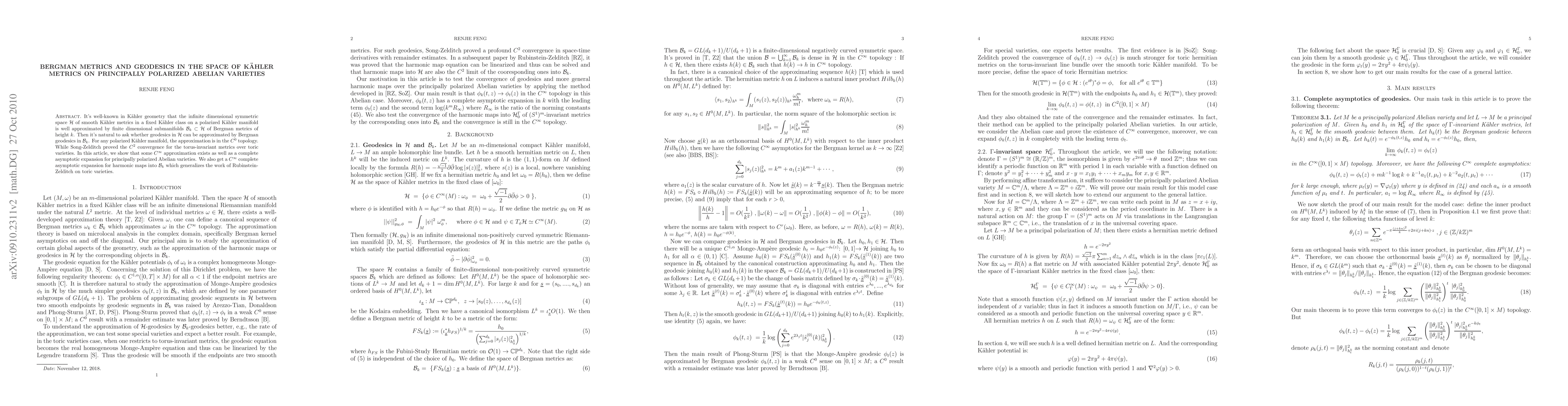 This paper investigates the approximation of geodesics in the infinite-dimensional space of Kähler metrics by finite-dimensional Bergman metrics on principally polarized Abelian varieties. It demonstrates $C^\infty$ convergence and provides a complete asymptotic expansion for these geodesics.
