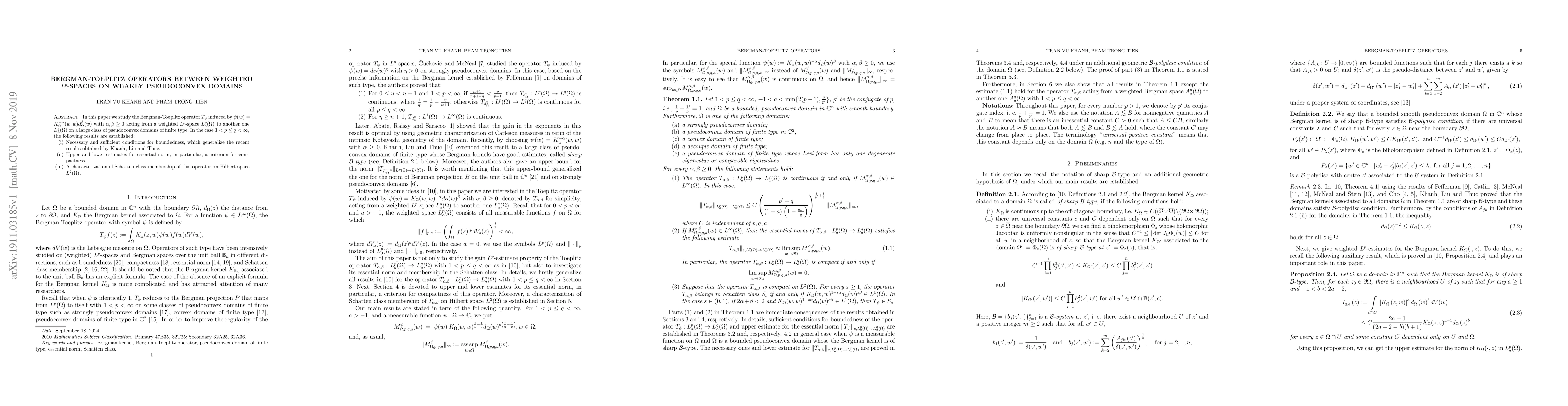 This research paper studies Bergman-Toeplitz operators between weighted L^p spaces on pseudoconvex domains, establishing necessary and sufficient conditions for boundedness, upper and lower estimates for essential norm, and a characterization of Schatten class membership.
