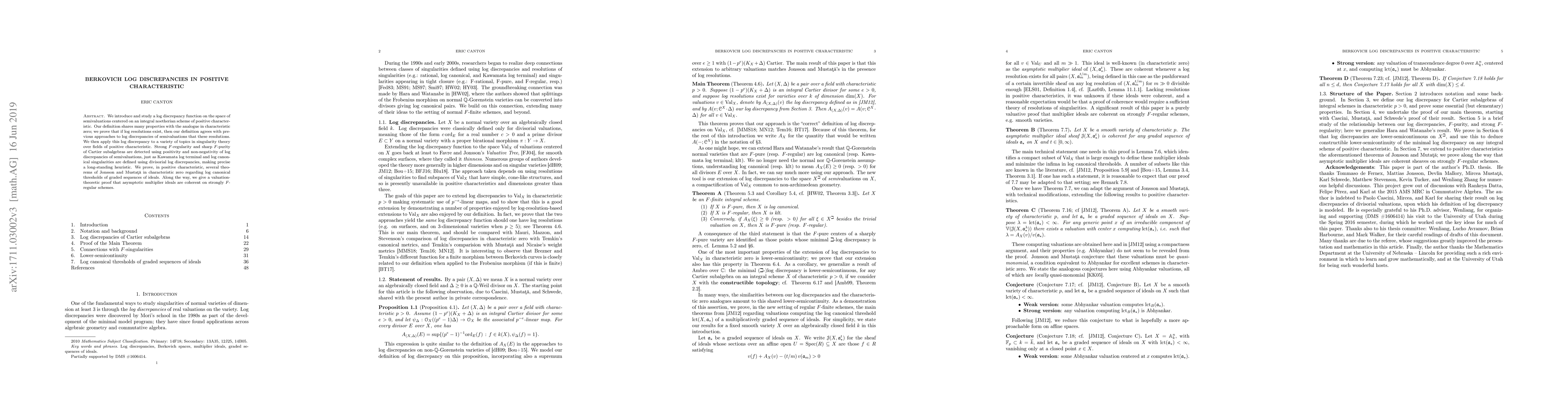 This paper introduces a log discrepancy function for semivaluations on schemes in positive characteristic, aligning it with known properties from characteristic zero. It applies this function to detect strong F-regularity and sharp F-purity, and proves theorems on log canonical thresholds, extending results from characteristic zero.