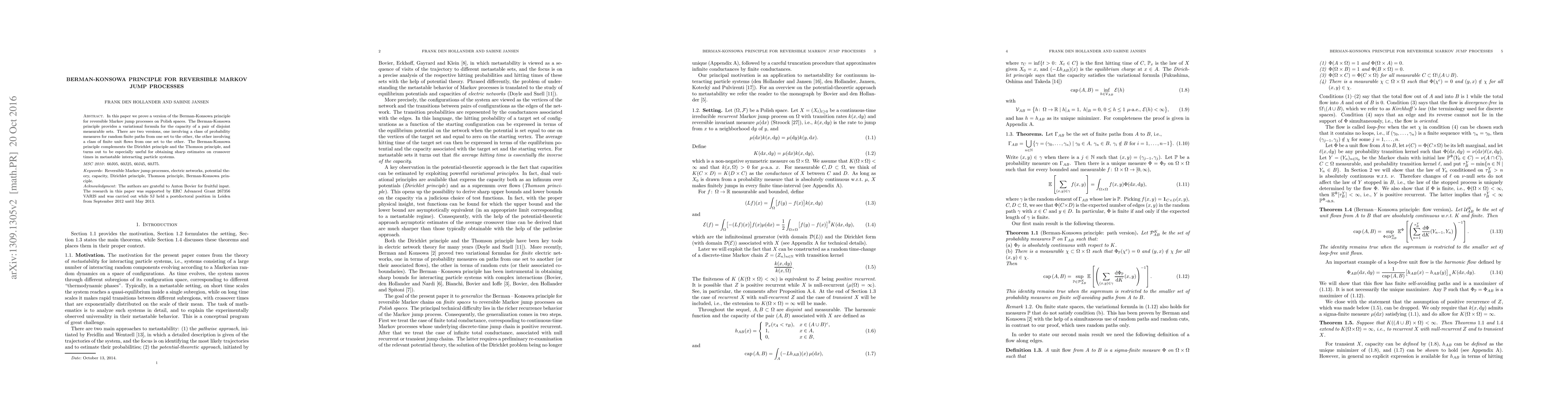 This paper proves a version of the Berman-Konsowa principle for reversible Markov jump processes on Polish spaces, providing a variational formula for capacity of disjoint measurable sets.