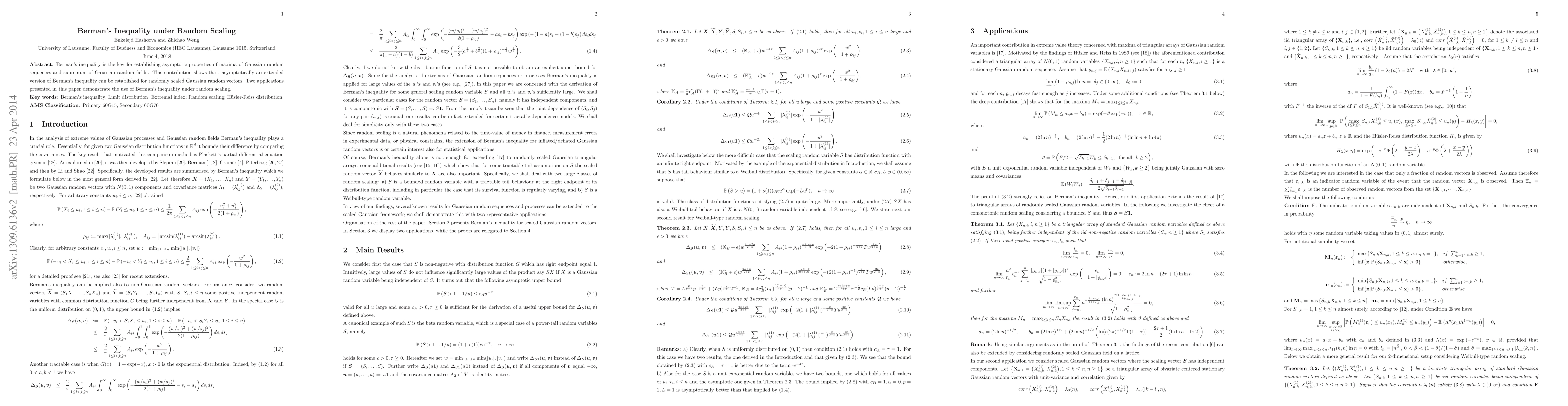 Berman's inequality is crucial for understanding the asymptotic behavior of Gaussian random sequences and fields. This paper extends Berman's inequality to randomly scaled Gaussian random vectors, demonstrating its applications in two specific contexts.