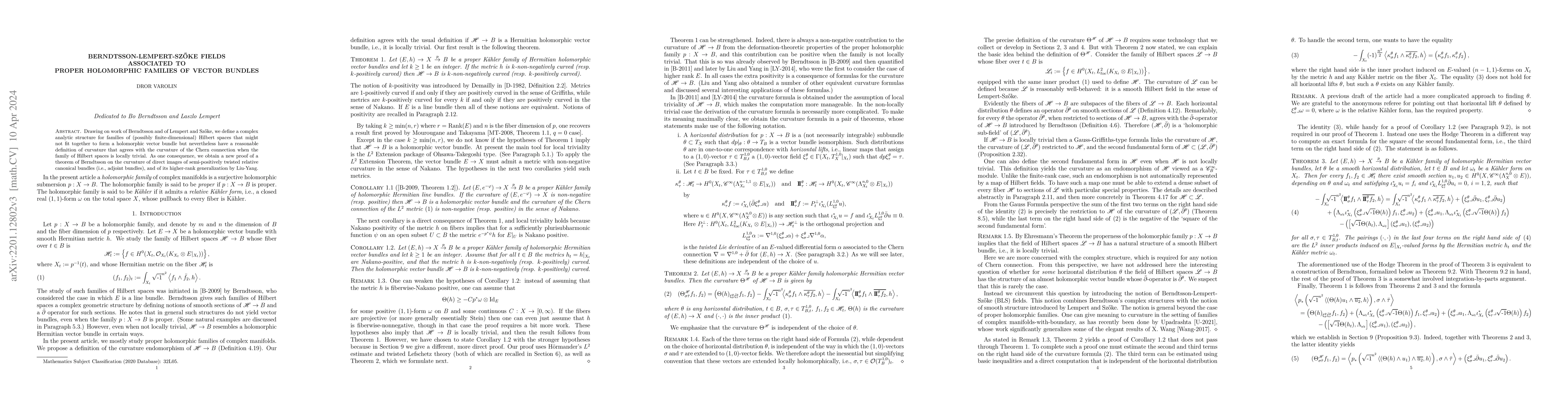 Summary: This paper defines complex analytic structures for non-trivial families of Hilbert spaces, introducing a notion of curvature that aligns with the Chern connection under triviality. It provides a novel proof for Berndtsson's theorem on curvature for semi-positively twisted relative canonical bundles and its higher-rank generalization by Liu and Yang.
