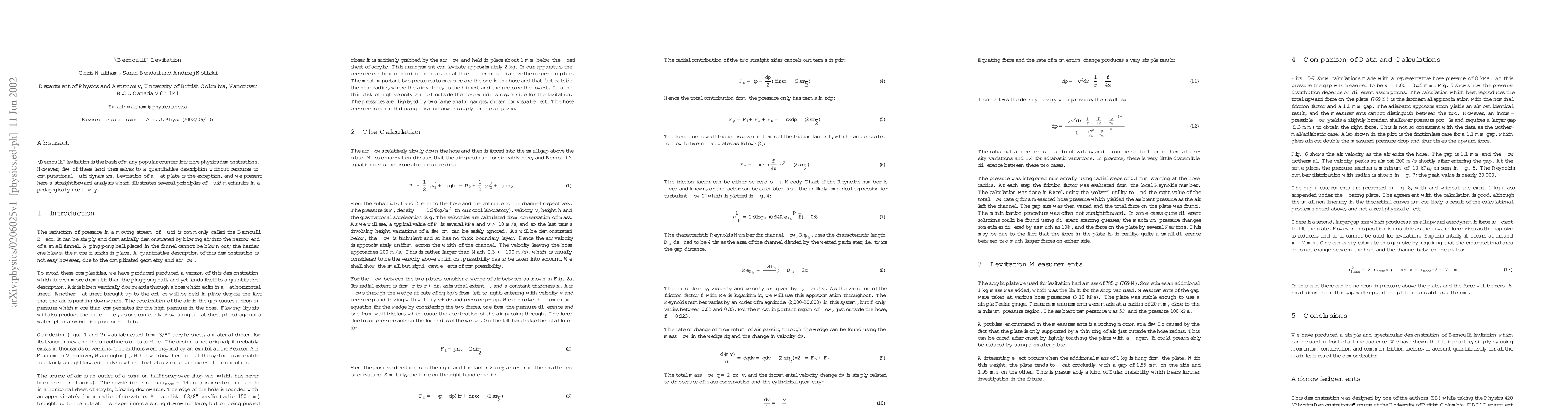Researchers analyze Bernoulli levitation, a physics phenomenon where objects defy gravity, providing a simple explanation of fluid mechanics principles in a pedagogical way.