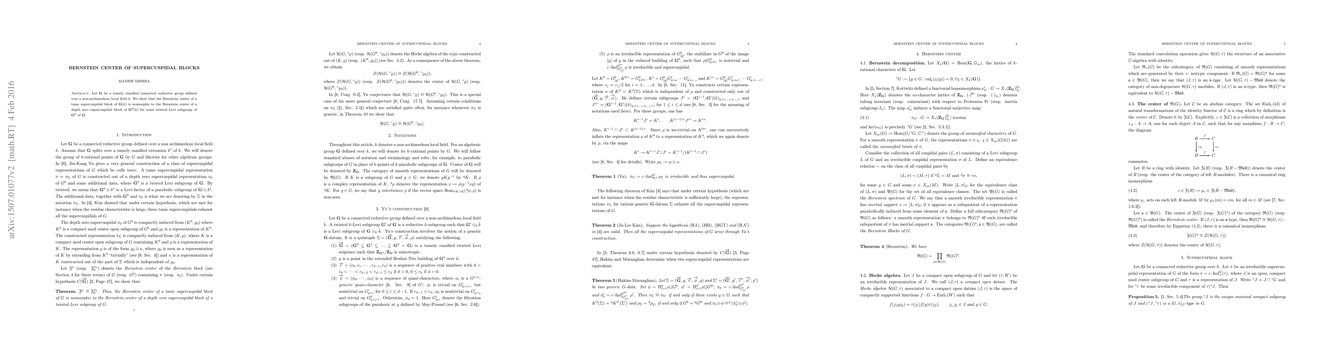 Let $\bf{ G}$ be a tamely ramified connected reductive group defined over a non-archimedean local field $k$. We show that the Bernstein center of a tame supercuspidal block of $\bf{ G}(k)$ is isomorphic to the Bernstein center of a depth zero supercuspidal block of $\bf{ G}^{0}(k)$ for some twisted Levi subgroup of $\bf{ G}^{0}$ of $\bf{ G}$.