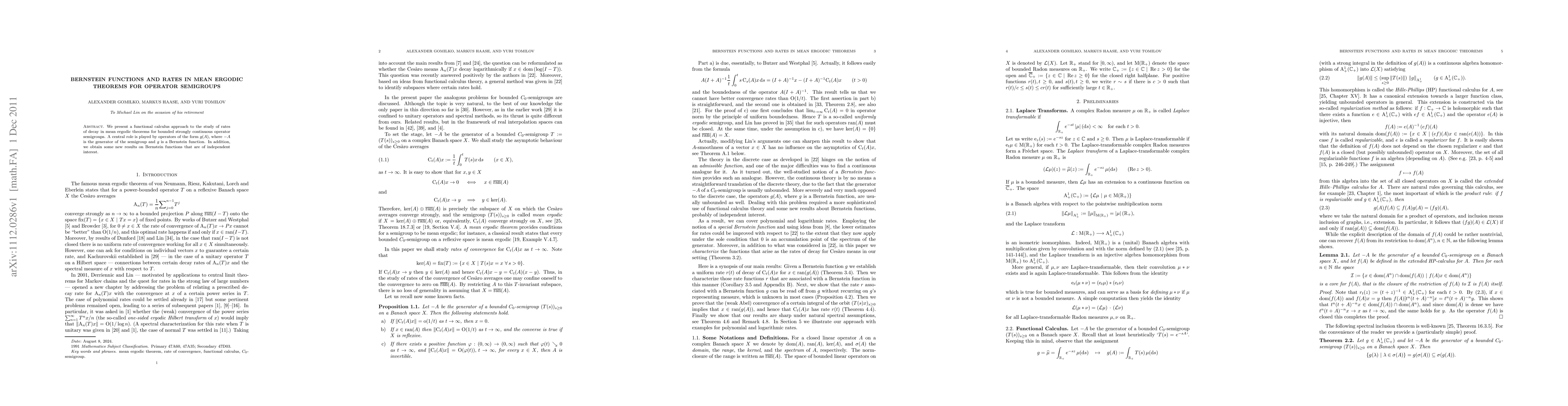 This paper explores the functional calculus approach to mean ergodic theorems for operator semigroups, focusing on decay rates through Bernstein functions. It also presents new findings on Bernstein functions that are significant in their own right.