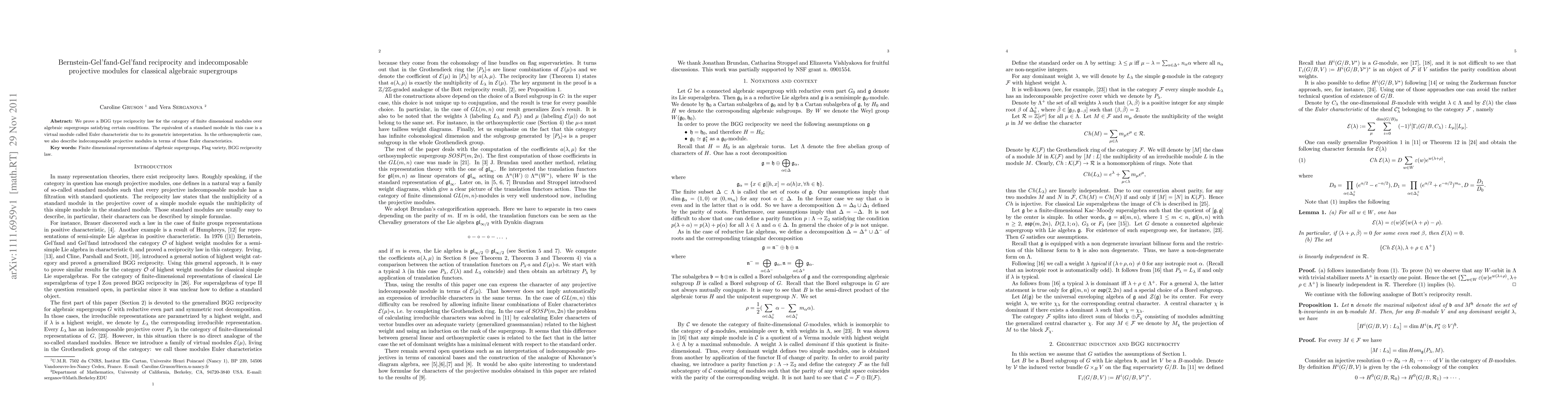 This paper establishes a reciprocity law for finite-dimensional modules over algebraic supergroups, providing insight into indecomposable projective modules in the orthosymplectic case.