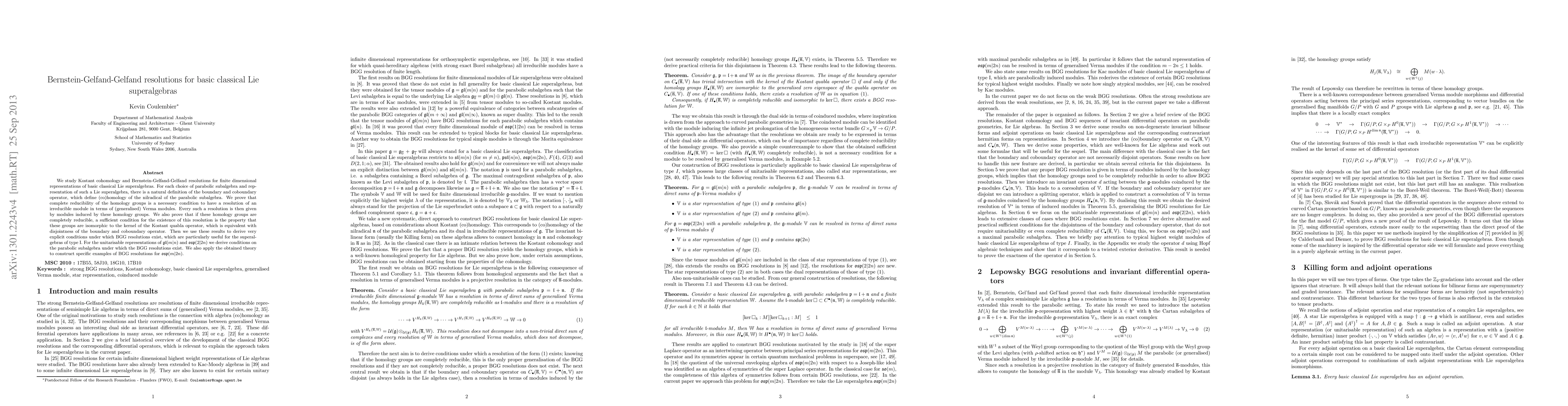 This paper explores Bernstein-Gelfand-Gelfand (BGG) resolutions for basic classical Lie superalgebras, focusing on necessary and sufficient conditions for their existence based on the complete reducibility of Kostant cohomology groups. It provides explicit criteria for these resolutions, particularly for superalgebras of type I, and derives new results for osp(2|2n) and unitarisable representations of gl(m|n).