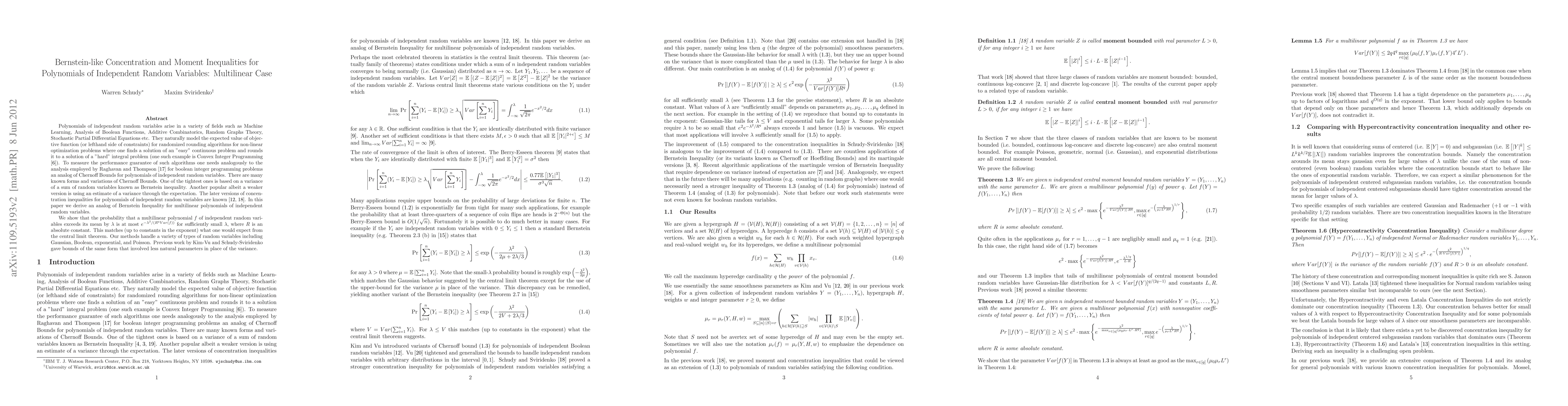 We show that the probability that a multilinear polynomial $f$ of independent random variables exceeds its mean by $\lambda$ is at most $e^{-\lambda^2 / (R^q Var(f))}$ for sufficiently small $\lambda$, where $R$ is an absolute constant. This matches (up to constants in the exponent) what one would expect from the central limit theorem. Our methods handle a variety of types of random variables including Gaussian, Boolean, exponential, and Poisson. Previous work by Kim-Vu and Schudy-Sviridenko gave bounds of the same form that involved less natural parameters in place of the variance.