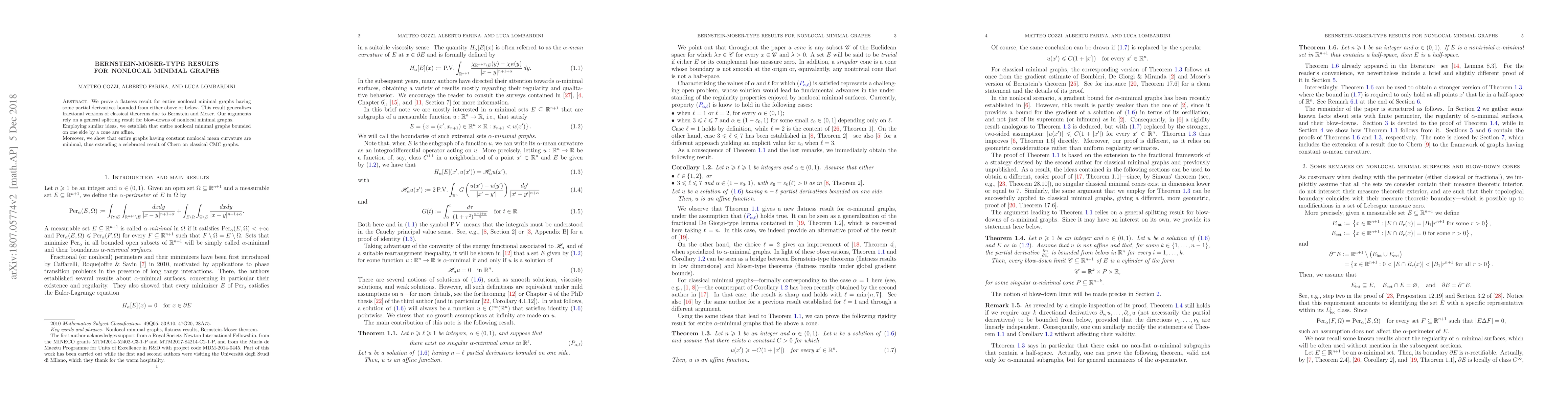 Researchers prove flatness results for entire nonlocal minimal graphs with partial derivatives bounded from above or below, generalizing classical theorems.