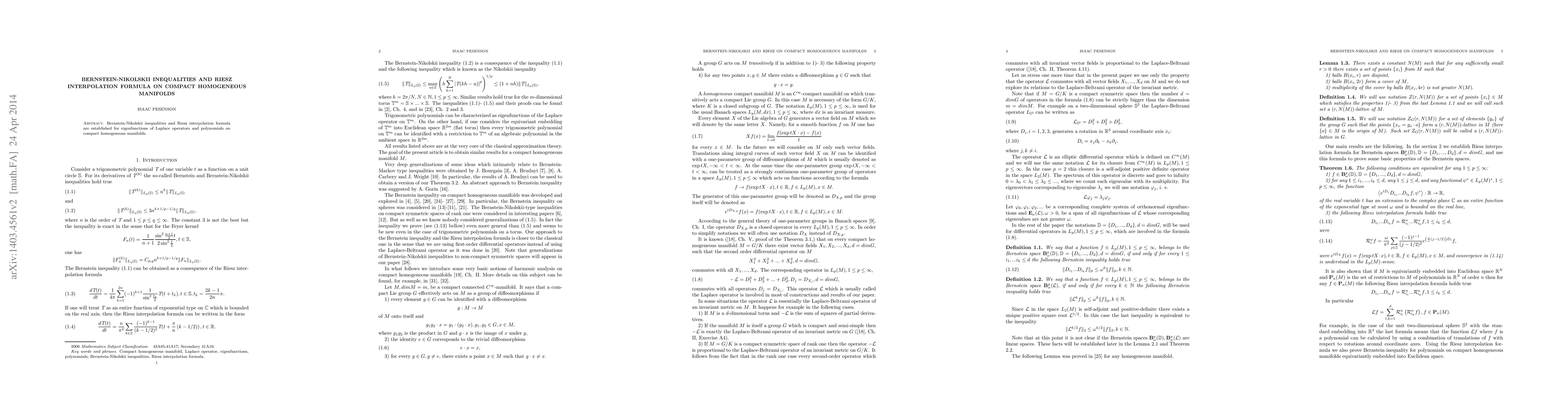 Summary: This paper establishes Bernstein-Nikolskii inequalities and the Riesz interpolation formula for eigenfunctions of Laplace operators and polynomials on compact homogeneous manifolds, providing significant insights into the behavior of these functions on such manifolds.