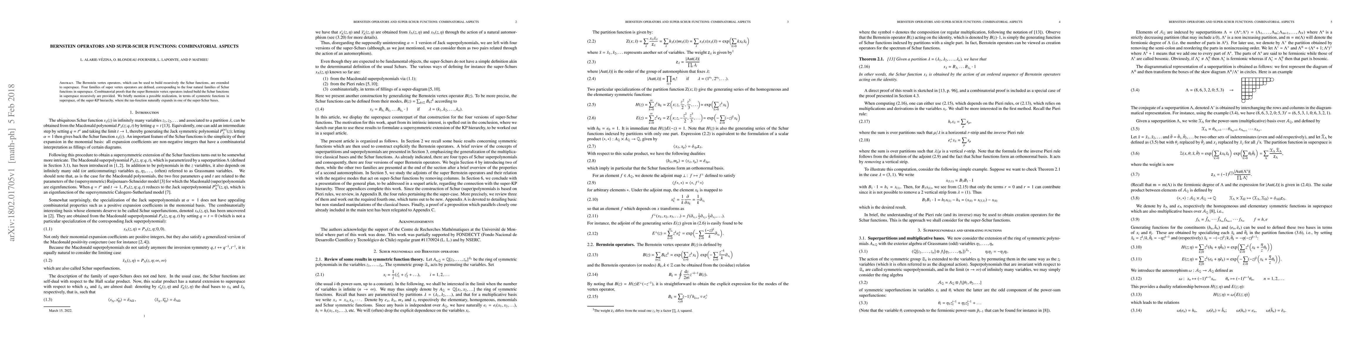 This paper extends Bernstein vertex operators to superspace, defining four families of super vertex operators that recursively construct super Schur functions. It provides combinatorial proofs for this construction and hints at a realization of the super-KP hierarchy in terms of symmetric functions in superspace.
