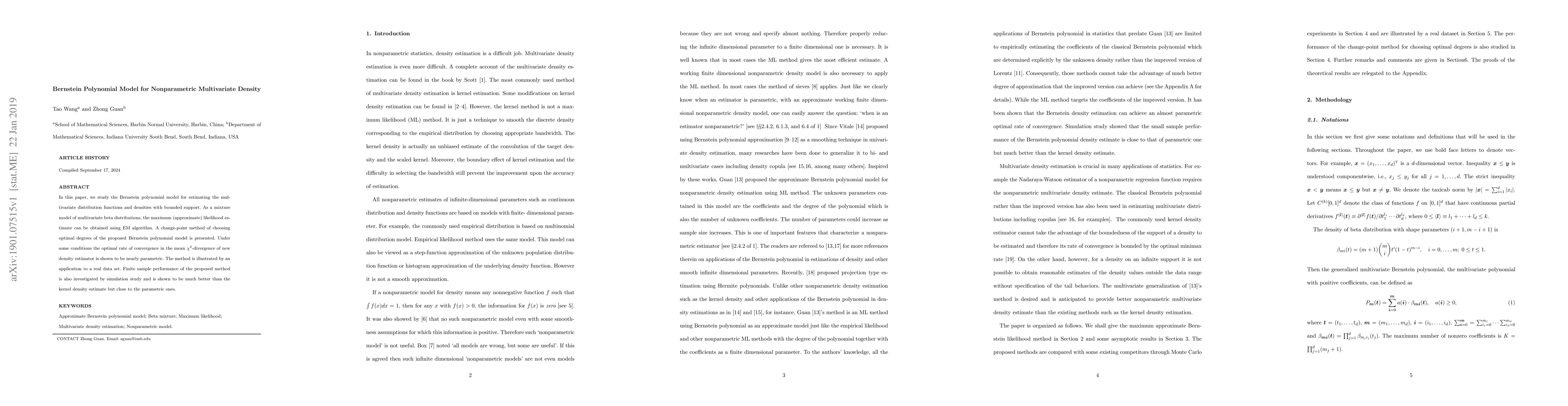 This paper proposes a Bernstein polynomial model for estimating multivariate distributions, showing improved performance over kernel density estimates in finite samples and near-parametric convergence rates under certain conditions.