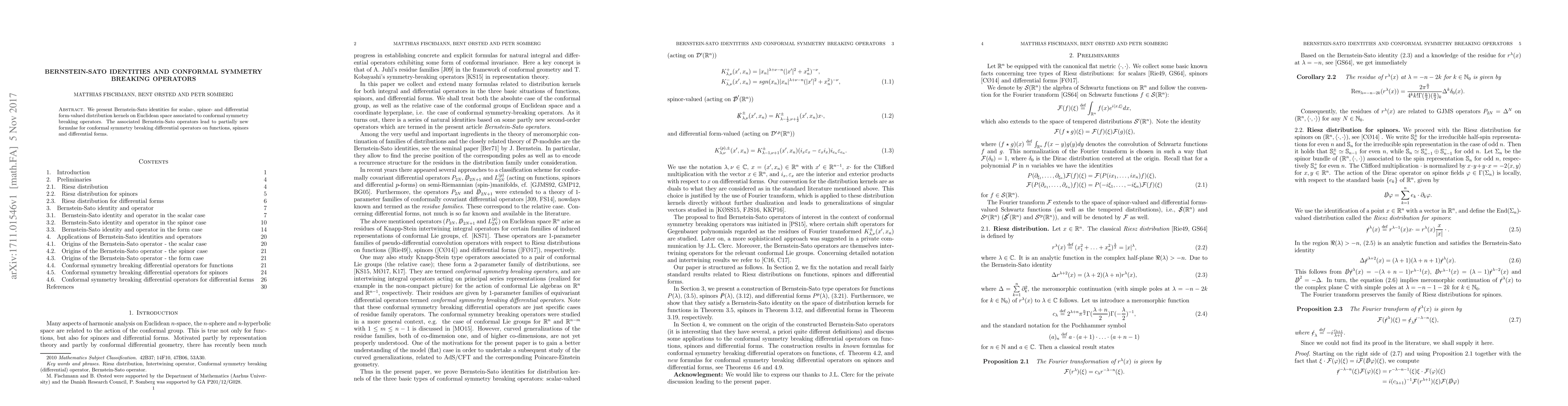 This paper derives Bernstein-Sato identities for distribution kernels tied to conformal symmetry breaking operators in Euclidean space, leading to new expressions for differential operators affecting functions, spinors, and differential forms.