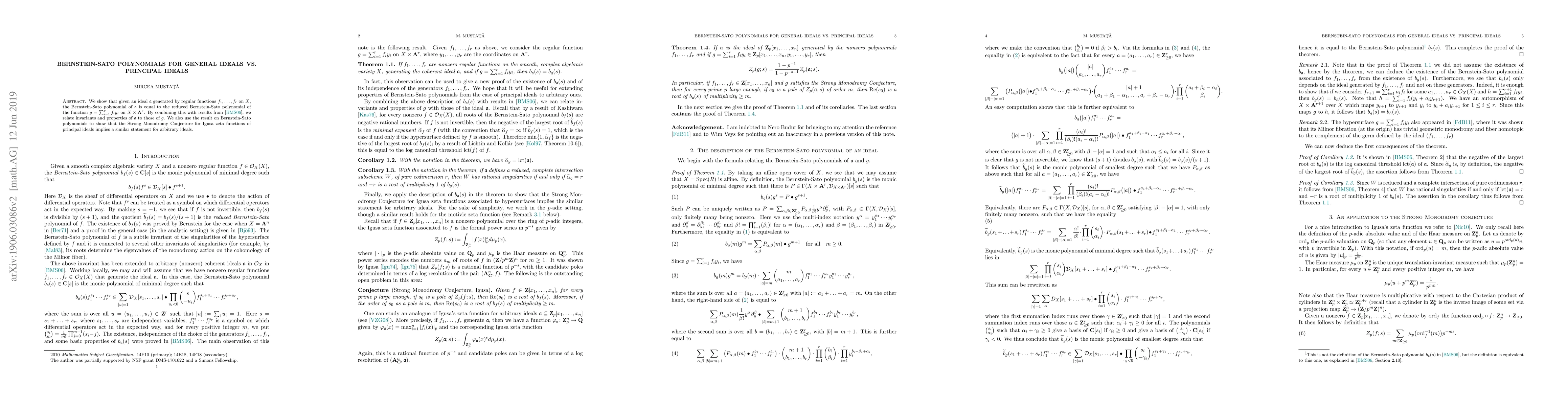 This paper demonstrates that the Bernstein-Sato polynomial for a general ideal on a smooth complex variety equals the reduced Bernstein-Sato polynomial of a combined function on the product variety, and uses this to relate properties of general ideals to principal ideals, supporting the Strong Monodromy Conjecture for arbitrary ideals.