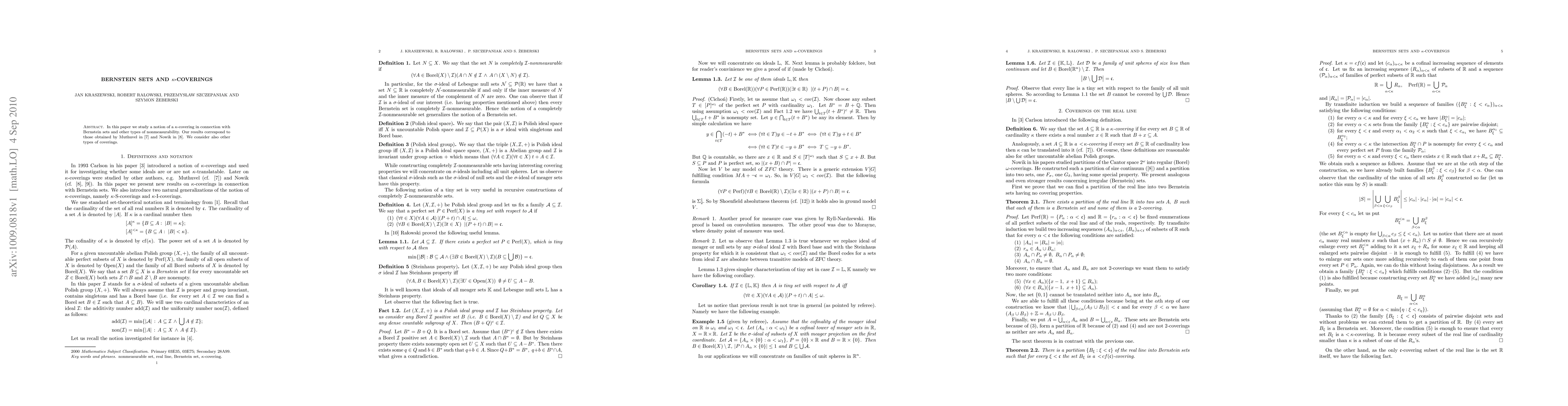 The paper introduces and analyzes various types of coverings, including κ-coverings and κ-S-coverings, in the context of Bernstein sets and nonmeasurability.