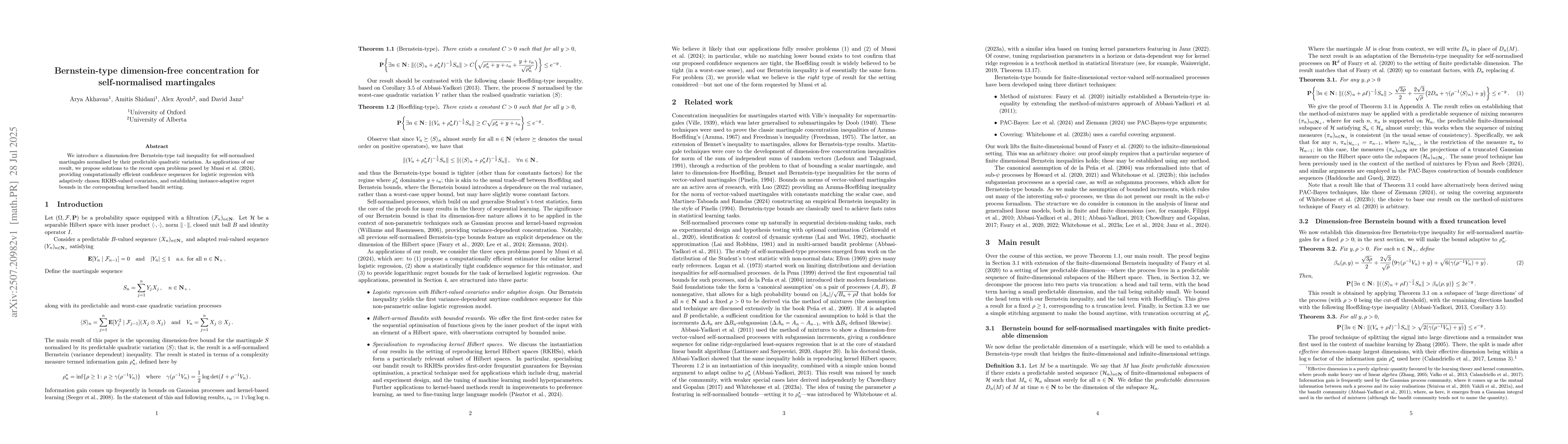 We introduce a dimension-free Bernstein-type tail inequality for self-normalised martingales normalised by their predictable quadratic variation. As applications of our result, we propose solutions to the recent open problems posed by Mussi et al. (2024), providing computationally efficient confidence sequences for logistic regression with adaptively chosen RKHS-valued covariates, and establishing instance-adaptive regret bounds in the corresponding kernelised bandit setting.