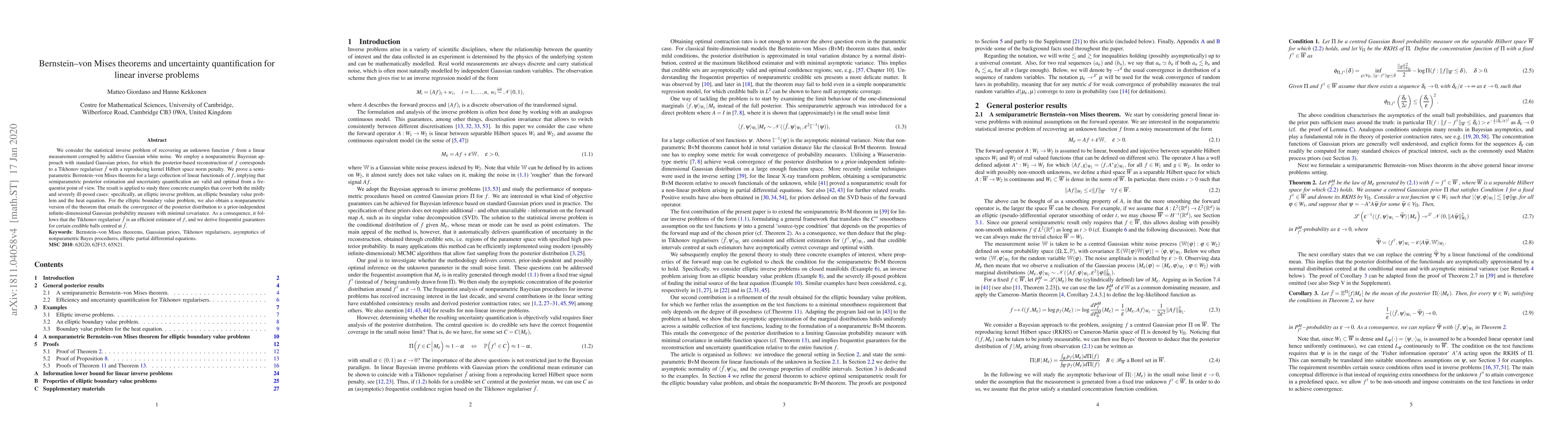 This paper proves a semiparametric Bernstein-von Mises theorem for nonparametric Bayesian approaches in linear inverse problems, demonstrating the validity and optimality of posterior estimation and uncertainty quantification. It applies the theorem to elliptic inverse problems, elliptic boundary value problems, and the heat equation, showing the Tikhonov regulariser as an efficient estimator.