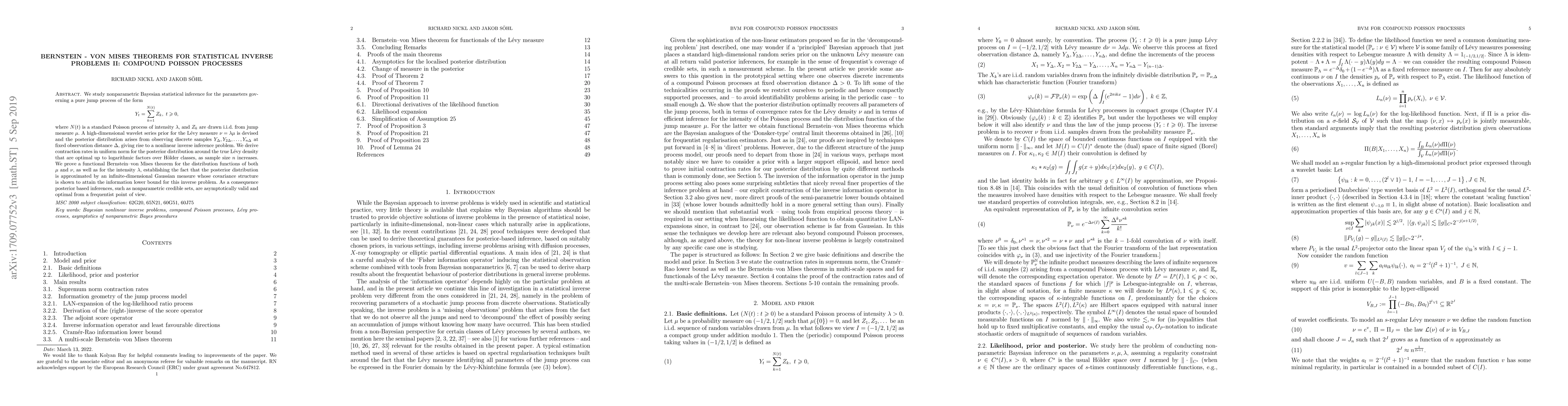 This paper investigates nonparametric Bayesian inference for parameters of a compound Poisson process, using a high-dimensional wavelet series prior. It establishes optimal contraction rates for posterior distributions and proves a functional Bernstein-von Mises theorem, demonstrating that the posterior distribution converges to a Gaussian measure with optimal covariance structure, ensuring asymptotically valid and optimal frequentist inferences.