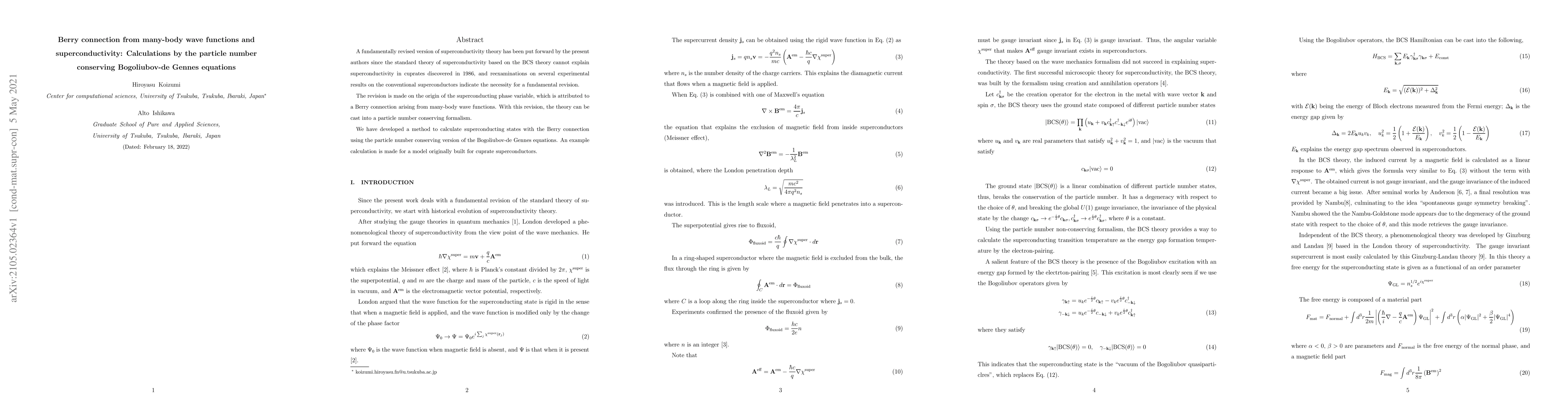 This paper proposes a revised theory of superconductivity based on the Berry connection from many-body wave functions, moving beyond BCS theory to explain cuprate superconductors. The authors develop a particle number conserving Bogoliubov-de Gennes equation method to calculate superconducting states, demonstrating its application on a model for cuprate superconductors.