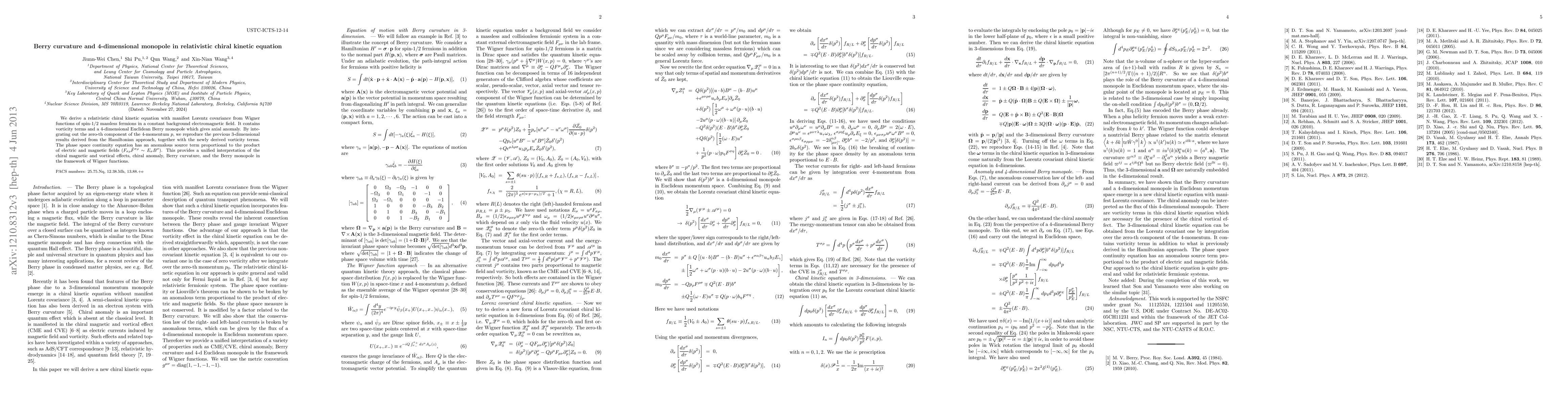 This paper derives a relativistic chiral kinetic equation from Wigner functions, revealing a 4-dimensional Euclidean Berry monopole that induces axial anomaly. The study connects chiral magnetic and vortical effects, chiral anomaly, and Berry curvature within a unified framework.
