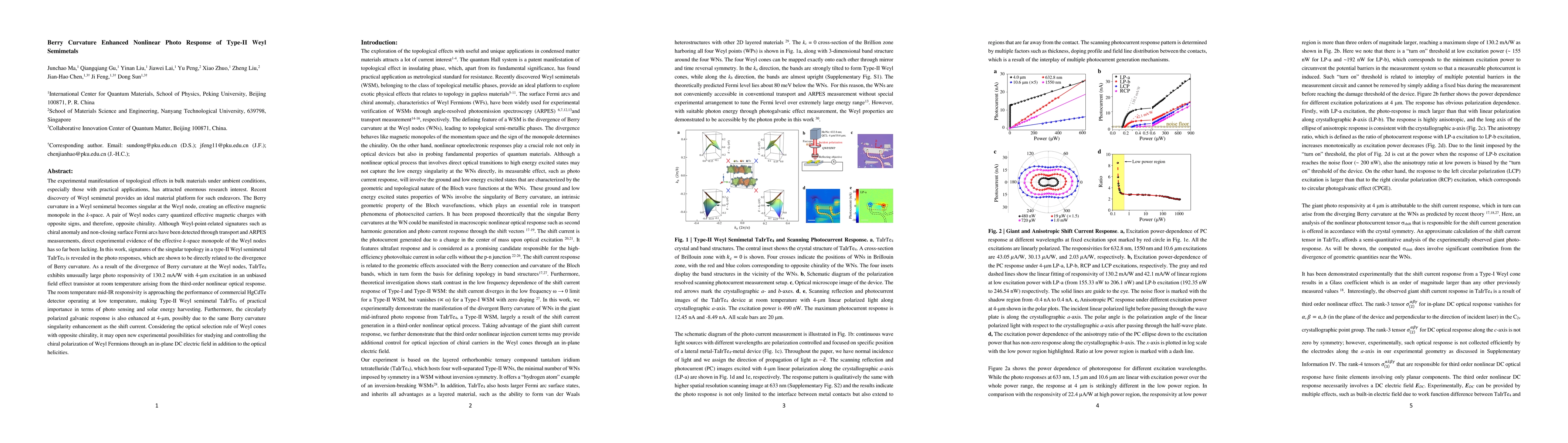 This paper reveals topological effects in TaIrTe4, a type-II Weyl semimetal, through enhanced nonlinear photogalvanic response due to Berry curvature singularity at Weyl nodes, achieving high photo responsivity suitable for mid-IR sensing and solar energy applications. The study demonstrates the practical significance of Weyl semimetals and introduces new avenues for chiral polarization control.