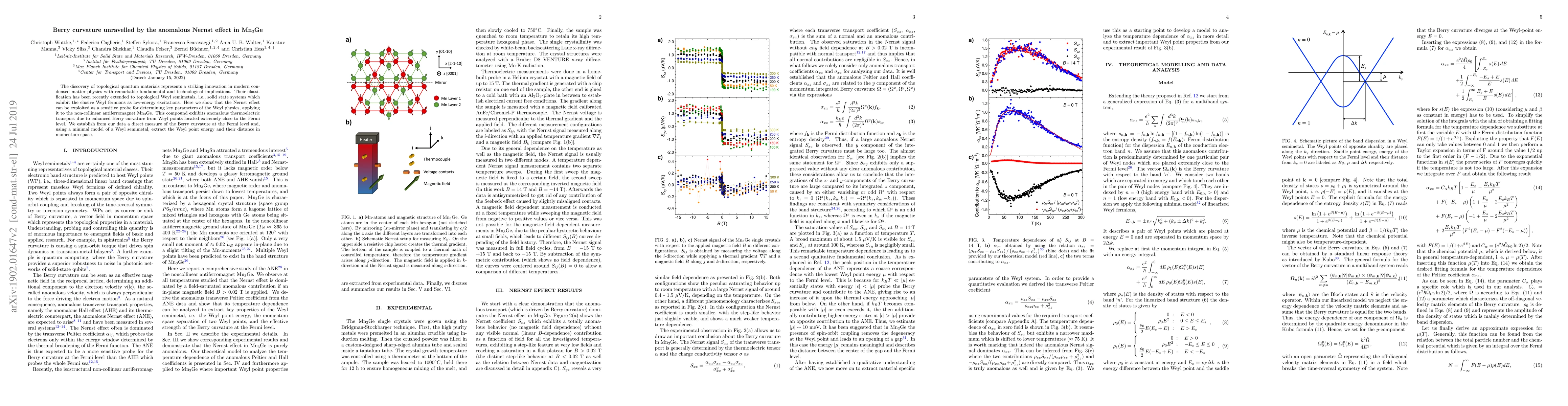 Researchers used the Nernst effect to study a material called Mn$_3$Ge, discovering that it exhibits unique thermoelectric properties due to its Weyl fermions near the Fermi level. By analyzing the Berry curvature, they extracted key parameters of the Weyl semimetal, including the energy and distance of the Weyl points in momentum space.
