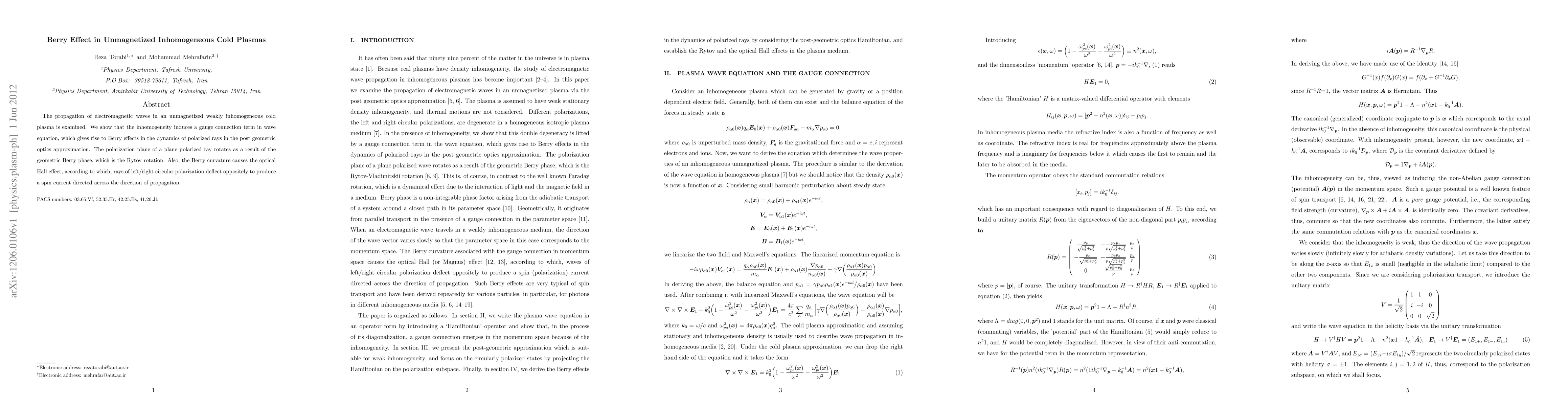 Researchers study how electromagnetic waves behave in weakly inhomogeneous plasmas, discovering a rotation of polarization planes due to a gauge connection term, leading to the optical Hall effect.