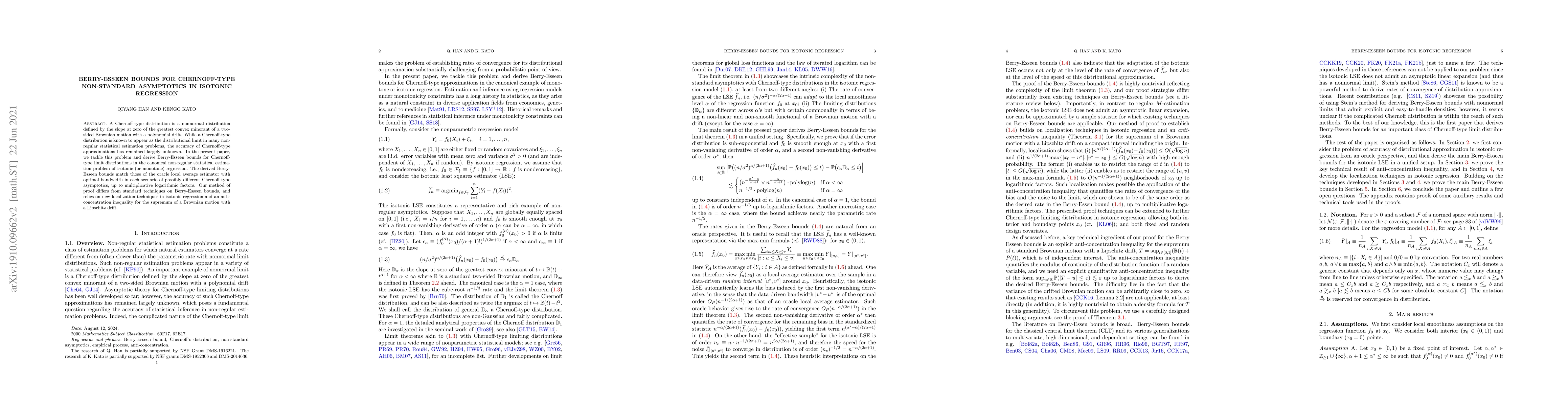 This paper derives Berry-Esseen bounds for Chernoff-type limit distributions in isotonic regression, matching the oracle local average estimator's accuracy up to logarithmic factors. The novel proof method utilizes localization techniques in isotonic regression and an anti-concentration inequality for Brownian motion with a Lipschitz drift.