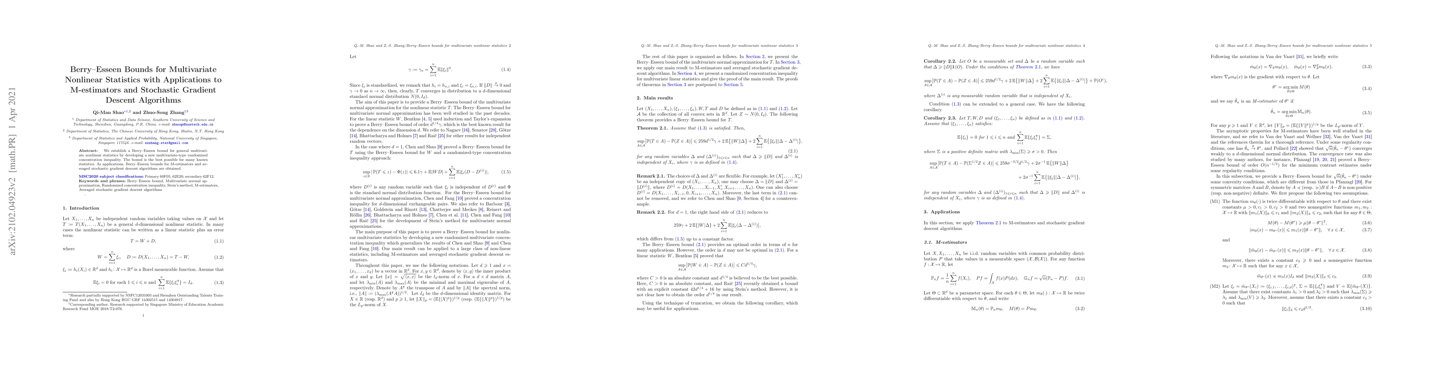 The paper establishes a new Berry-Esseen bound for multivariate nonlinear statistics using a novel multivariate-type randomized concentration inequality, and applies it to derive bounds for M-estimators and averaged stochastic gradient descent algorithms.
