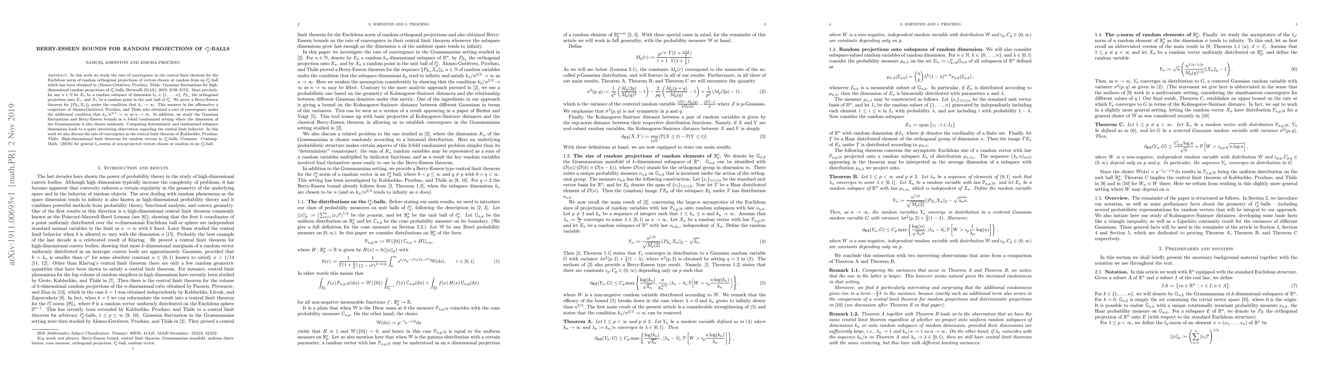 The paper proves a Berry-Esseen theorem for the rate of convergence in the central limit theorem of Euclidean norm of random orthogonal projections of vectors from an $ell_p^n$-ball, improving upon previous results.