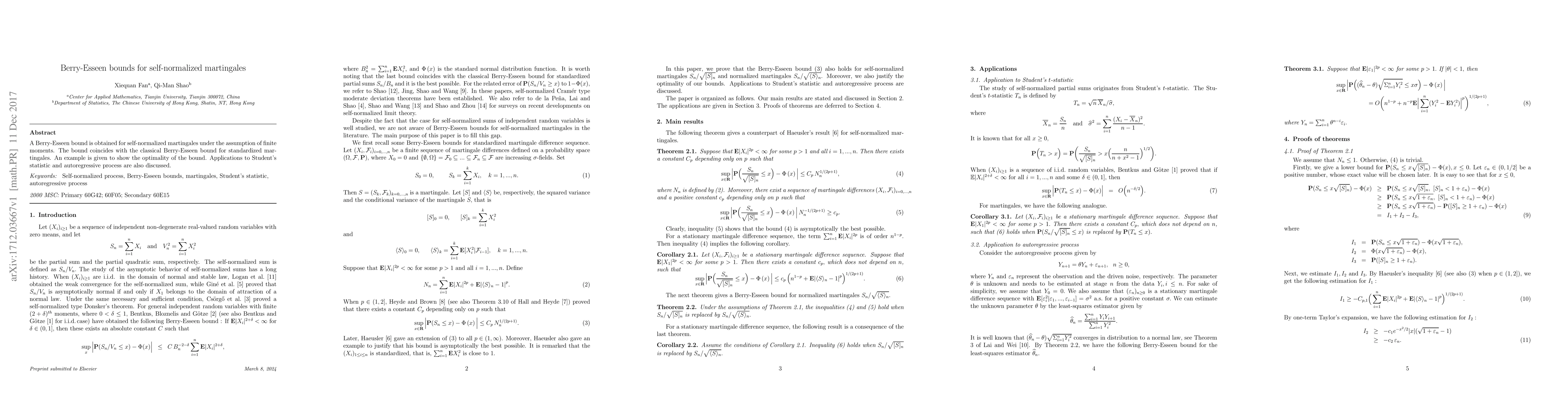 This paper establishes a Berry-Esseen bound for self-normalized martingales, showing it matches the classical bound for standardized martingales under finite moment conditions. An example demonstrates the bound's optimality, with applications to Student's statistic and autoregressive processes.