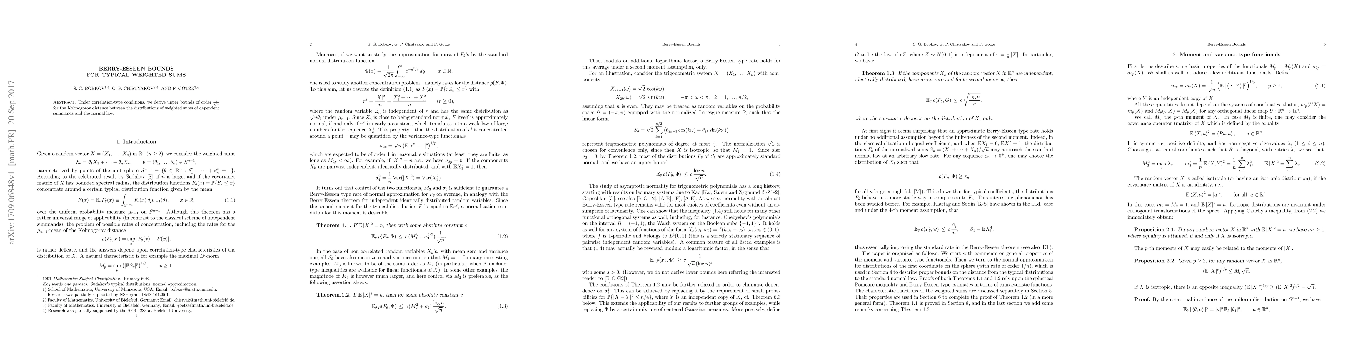 Researchers derived upper bounds of order 1/sqrt(n) for the difference between weighted sums of dependent variables and a normal distribution under certain conditions. This improvement provides new insights into the typical behavior of correlated data.