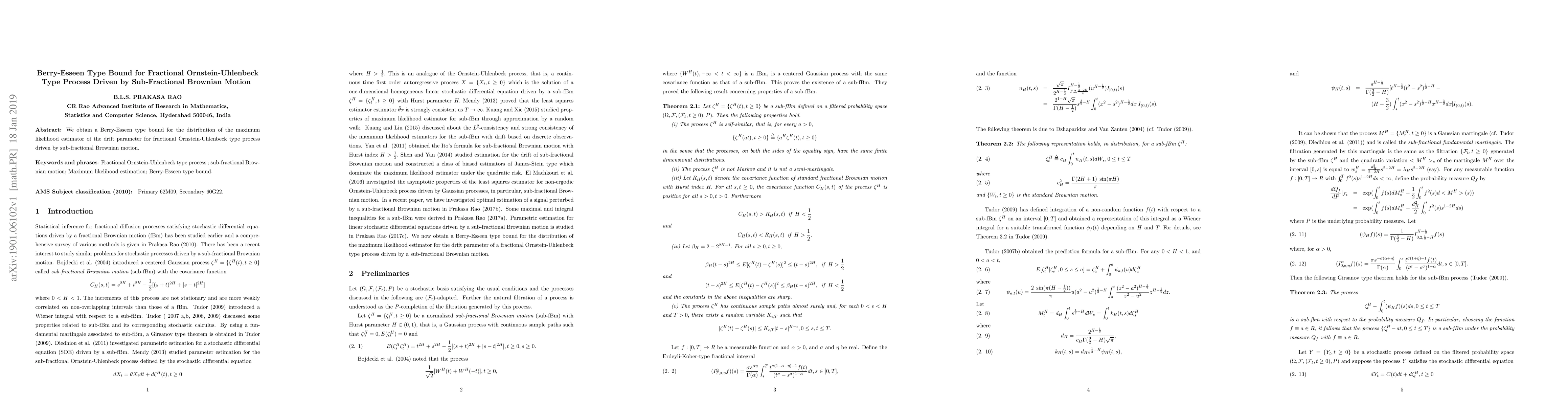 Summary: This paper establishes a Berry-Esseen type bound for the maximum likelihood estimator of the drift parameter in a fractional Ornstein-Uhlenbeck process driven by sub-fractional Brownian motion, providing insights into the convergence rate of the estimator.