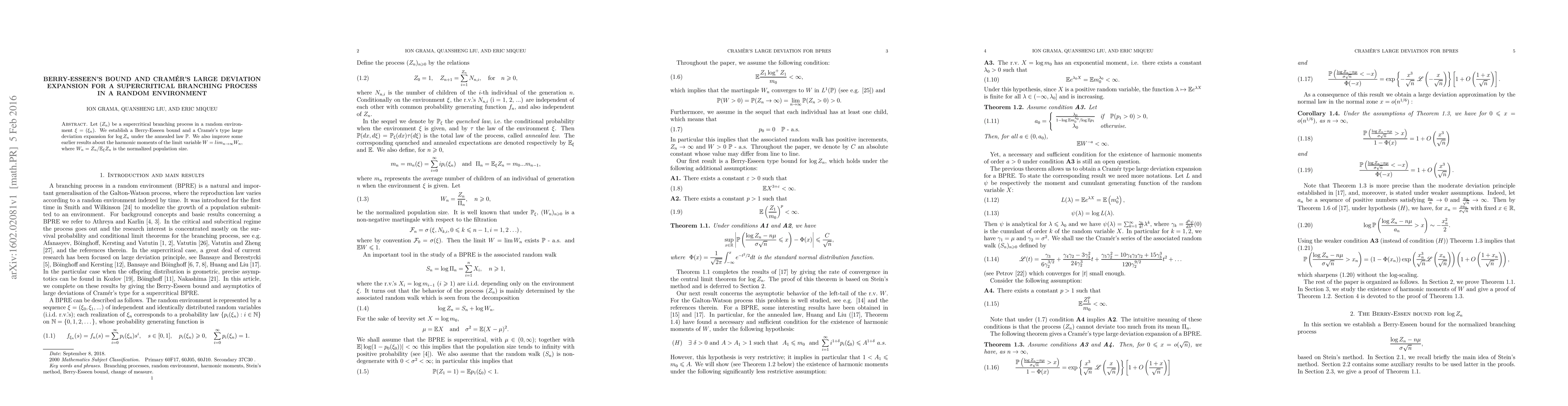 This paper establishes a Berry-Esseen bound and a Cramér's large deviation expansion for a supercritical branching process in a random environment, improving earlier results on the harmonic moments of the normalized population size.