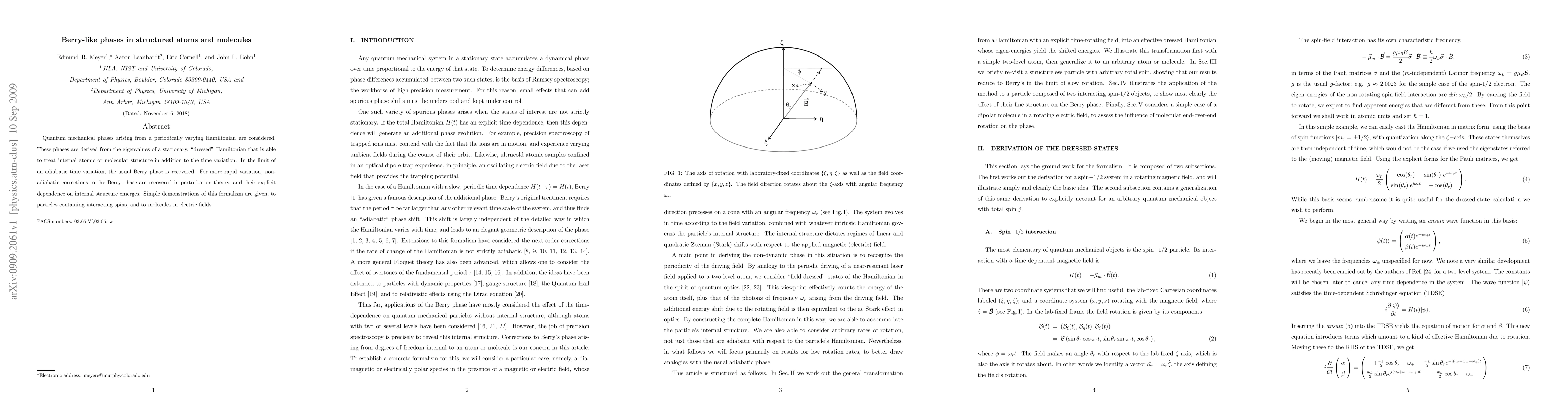 This paper explores quantum mechanical phases from periodically varying Hamiltonians, deriving them from a "dressed" Hamiltonian that accounts for both time variation and internal atomic/molecular structure. It extends the usual Berry phase to include non-adiabatic corrections for rapid time variations, demonstrating the formalism with particles containing interacting spins and molecules in electric fields.
